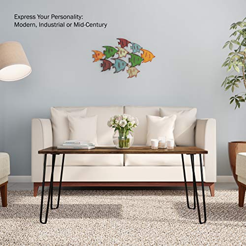 - MODERN COFFEE TABLE - This table has a chic updated mid-century modern design. The distressed woodgrain-look top and hairpin legs bring a contemporary style to any room, while the compact footprint makes it ideal for small homes, apartments, or dorms.