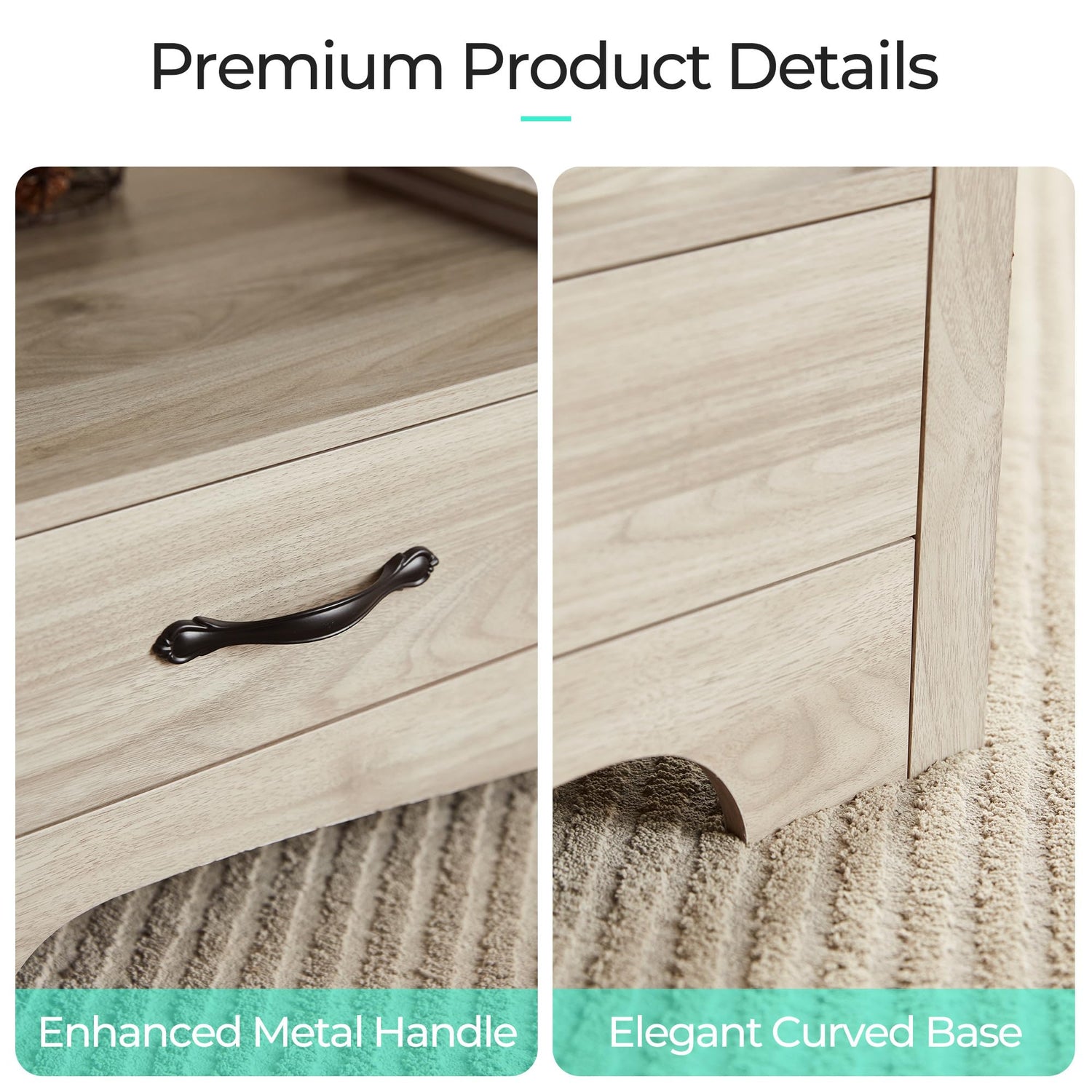 LINSY HOME Farmhouse Coffee Table with Storage, Wood Coffee Table for Living Room, Open Display Area and Storage Drawers with Metal Handles, Chic Style with Curved Base. Oak and Brown