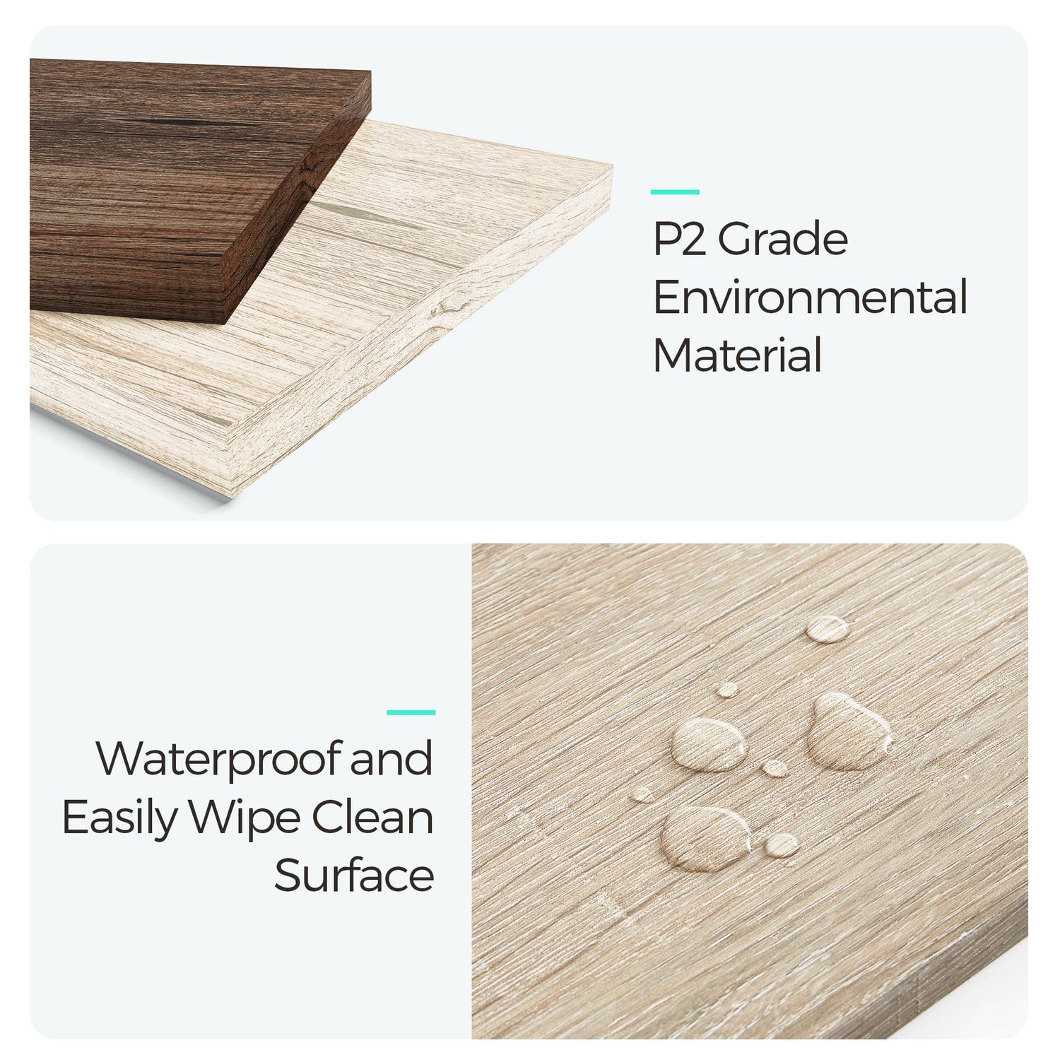 - This wood coffee table combines farmhouse appeal with spacious storage options. Made with P2-grade engineered wood and a waterproof surface, easily wipe away any spills as you display your favorite decor.