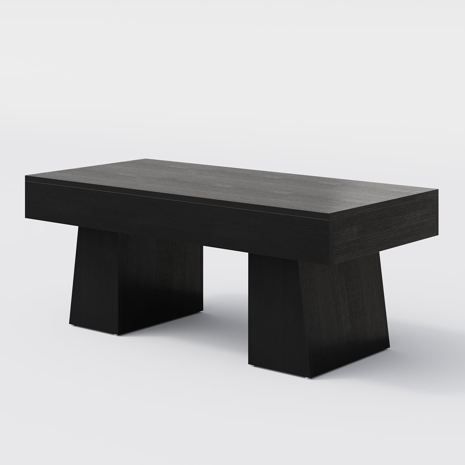 LITTLE TREE Farmhouse Coffee Table, 47 Inches Wooden Rectangular Accent Center Tables with Thick Base, Modern Low Cocktail Tea Furniture for Living Room (Black)
