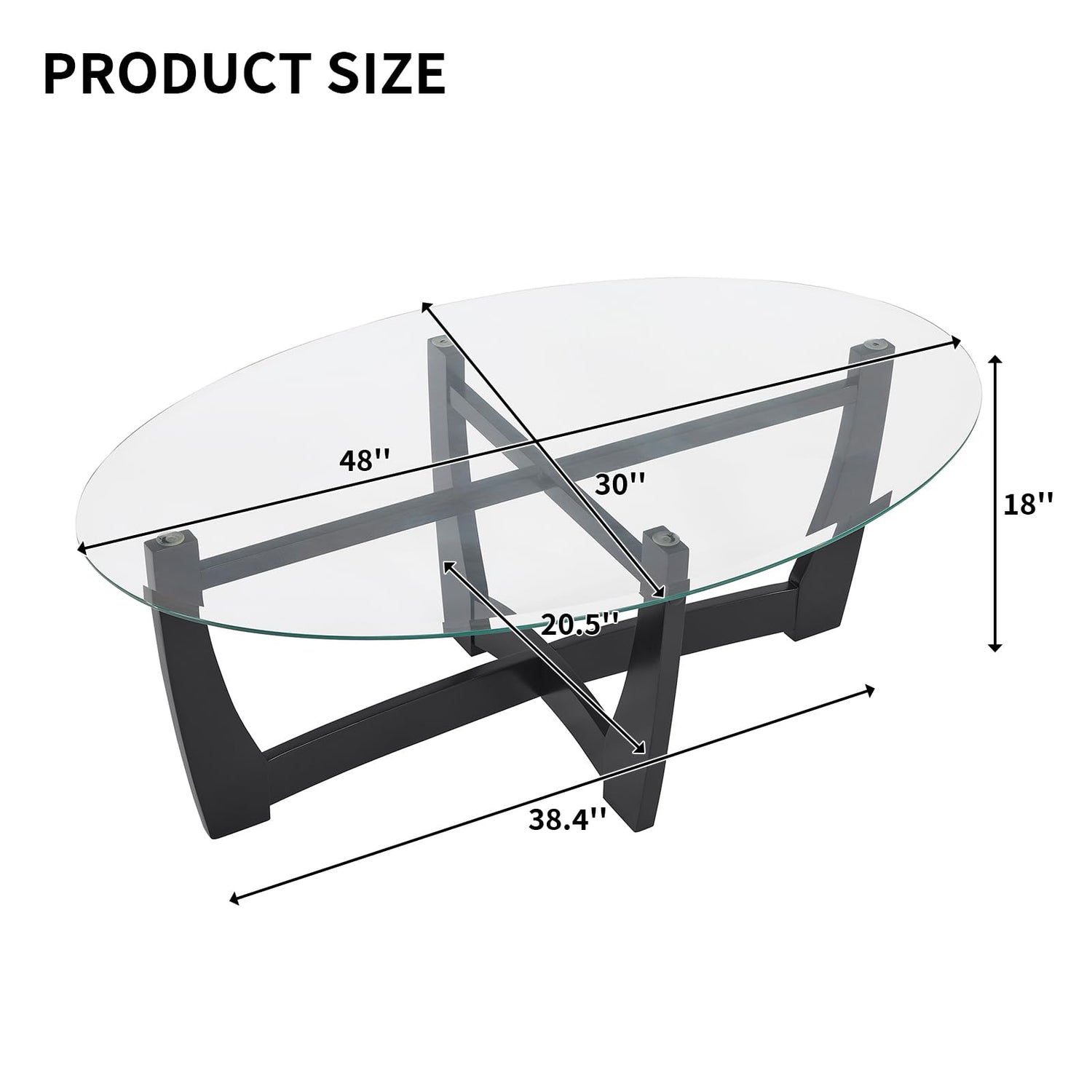 LKTART 48" Oval Glass Coffee Table with Tempered Glass Top Cross and Solid Wood Base Simple & Modern Center Table for Living Room Office Apartment Black