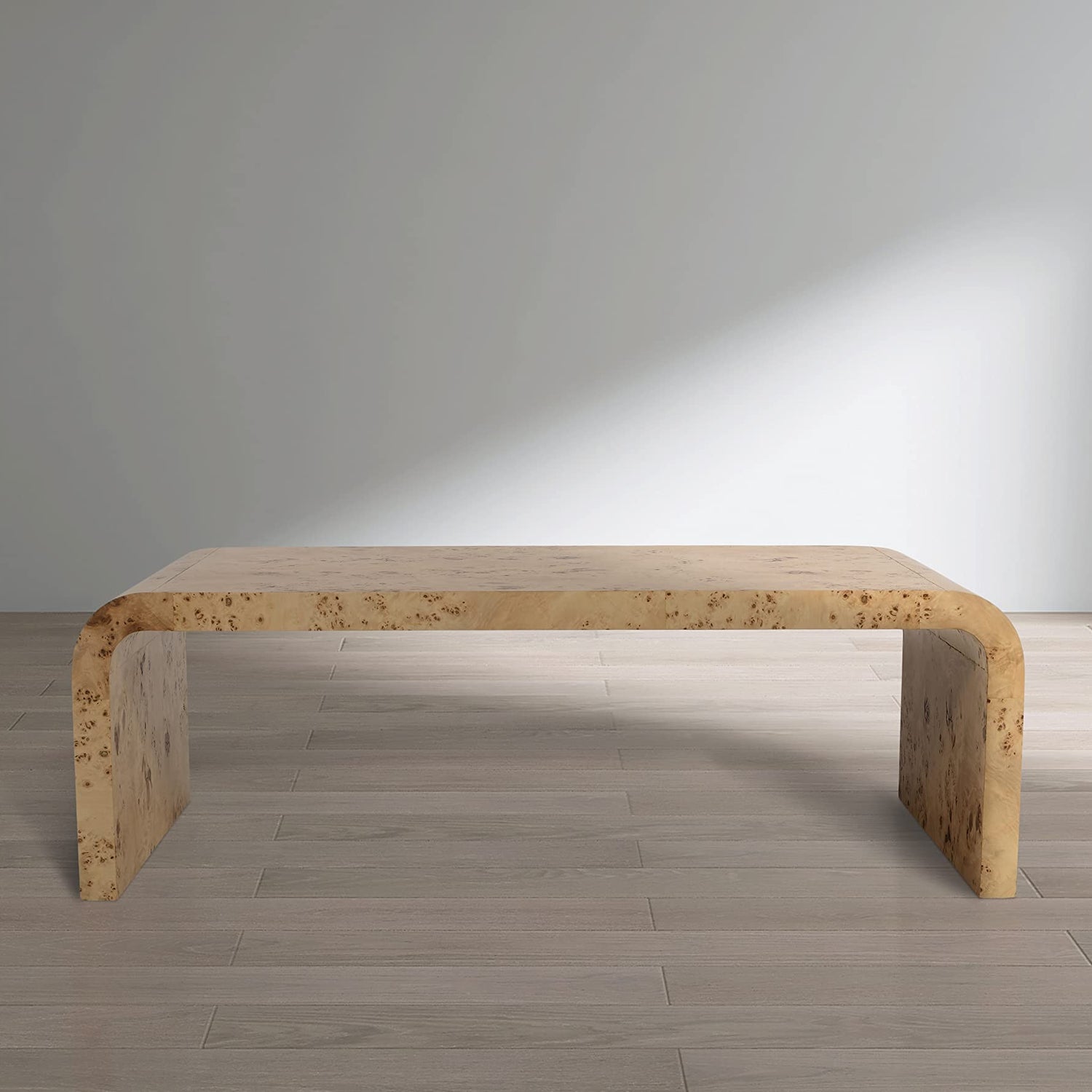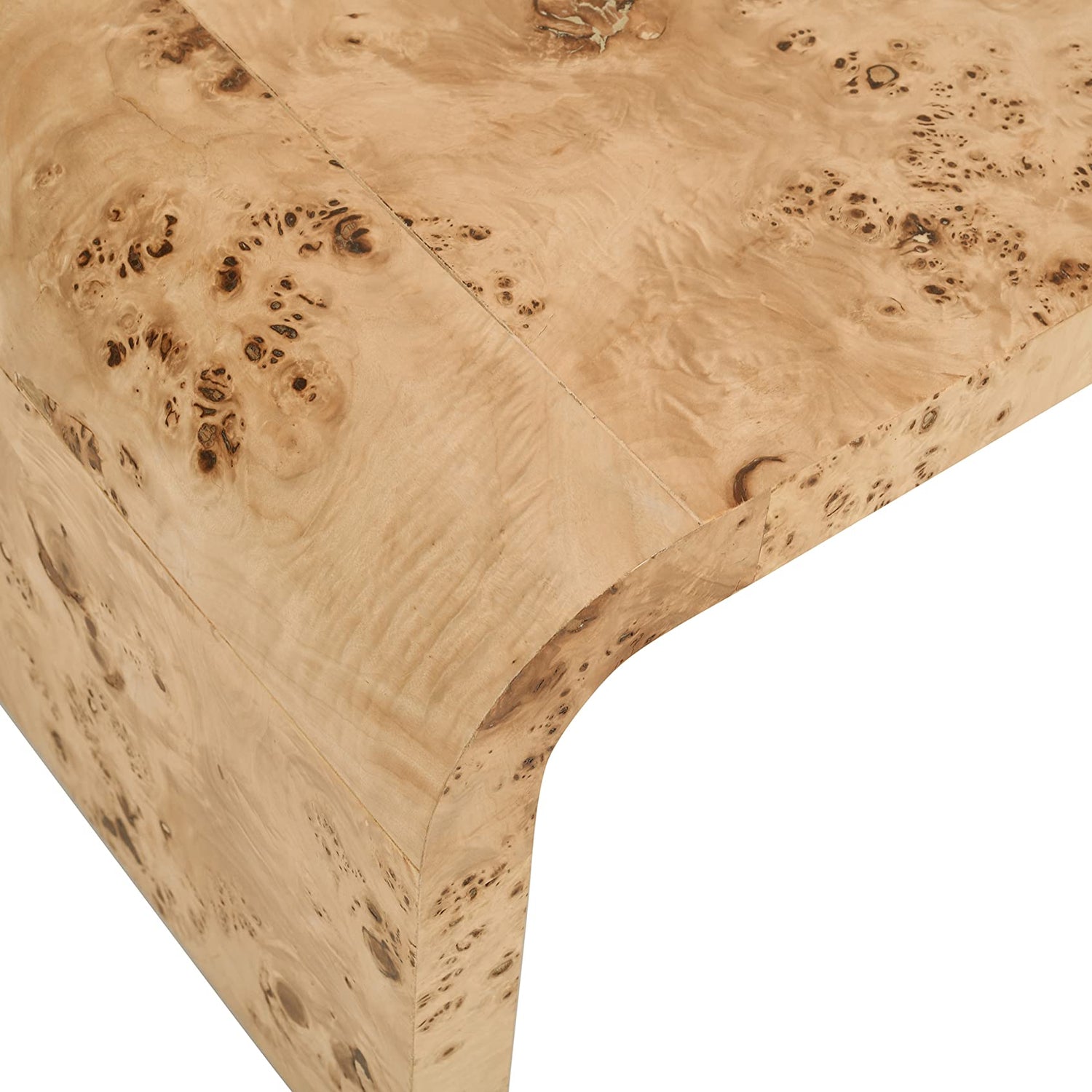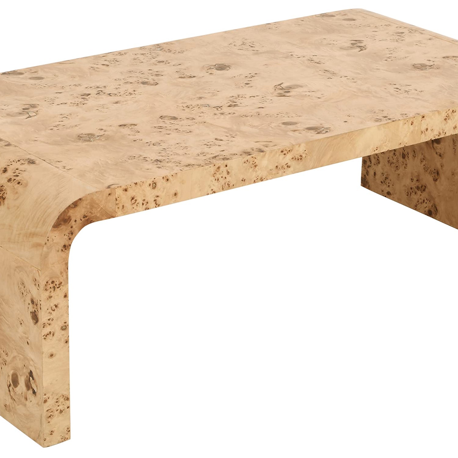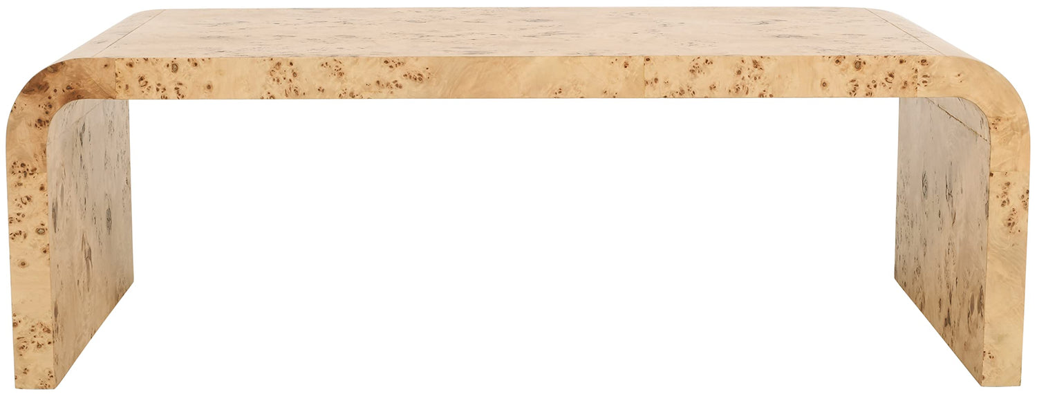 Meridian Furniture 269-C Cresthill Collection Mid-Century Modern Coffee Table with Ash Burl Wood, Natural Ash Finish, Curved Art Deco Design, 48" W x 24" D x 16" H, Natural