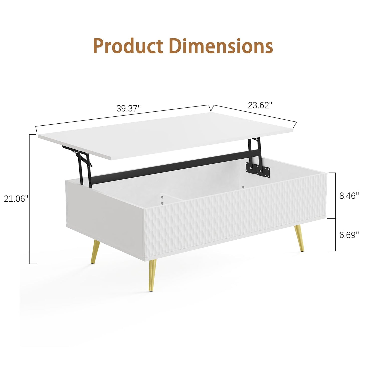 • Lift Top design : High quality spring mechanism enables the tabletop to be lifted or lowered down easily, smoothly and quietly, creating a decent coffee table which can double up as a workbench or dining space when sitting on the sofa. Dimension: 39.37 (W) x 23.62 (D) x 15.55 (H) Inches