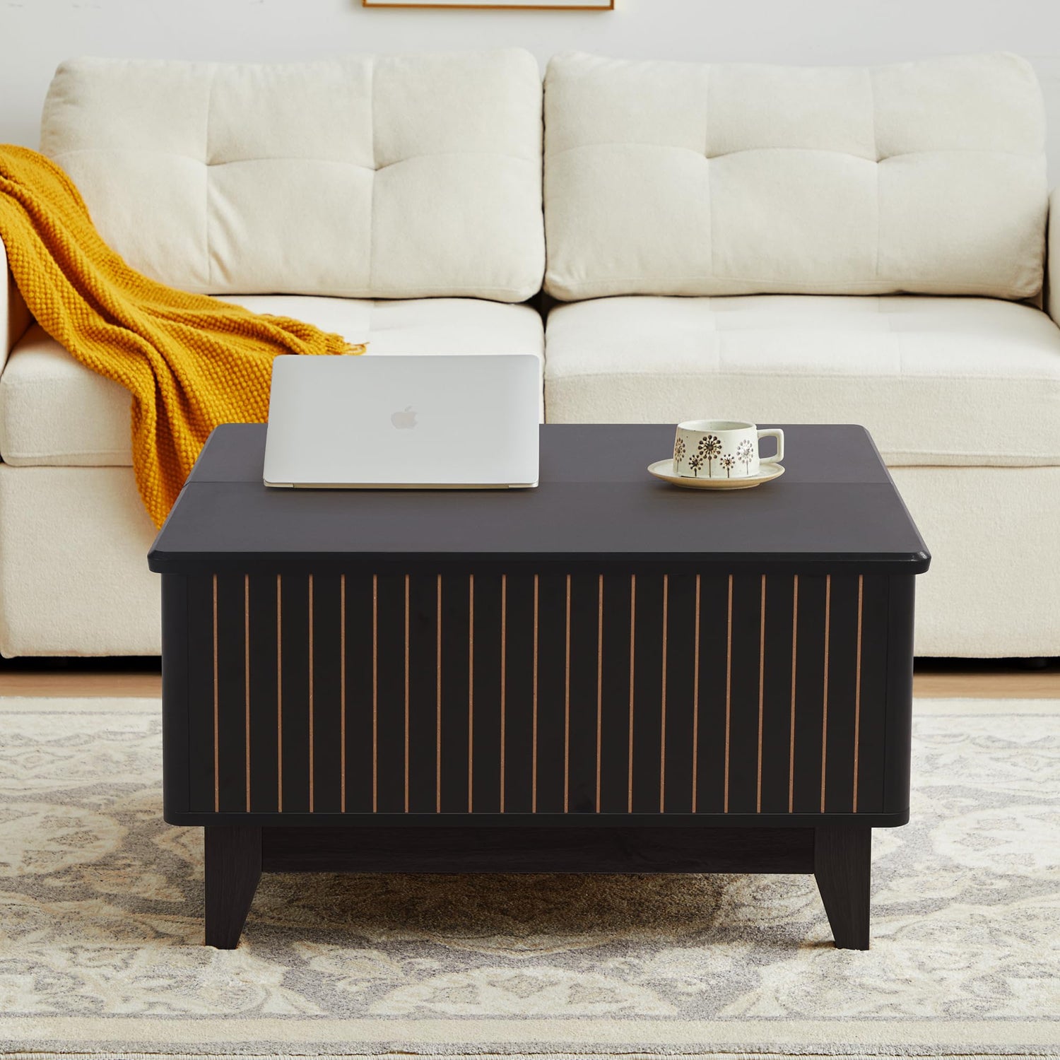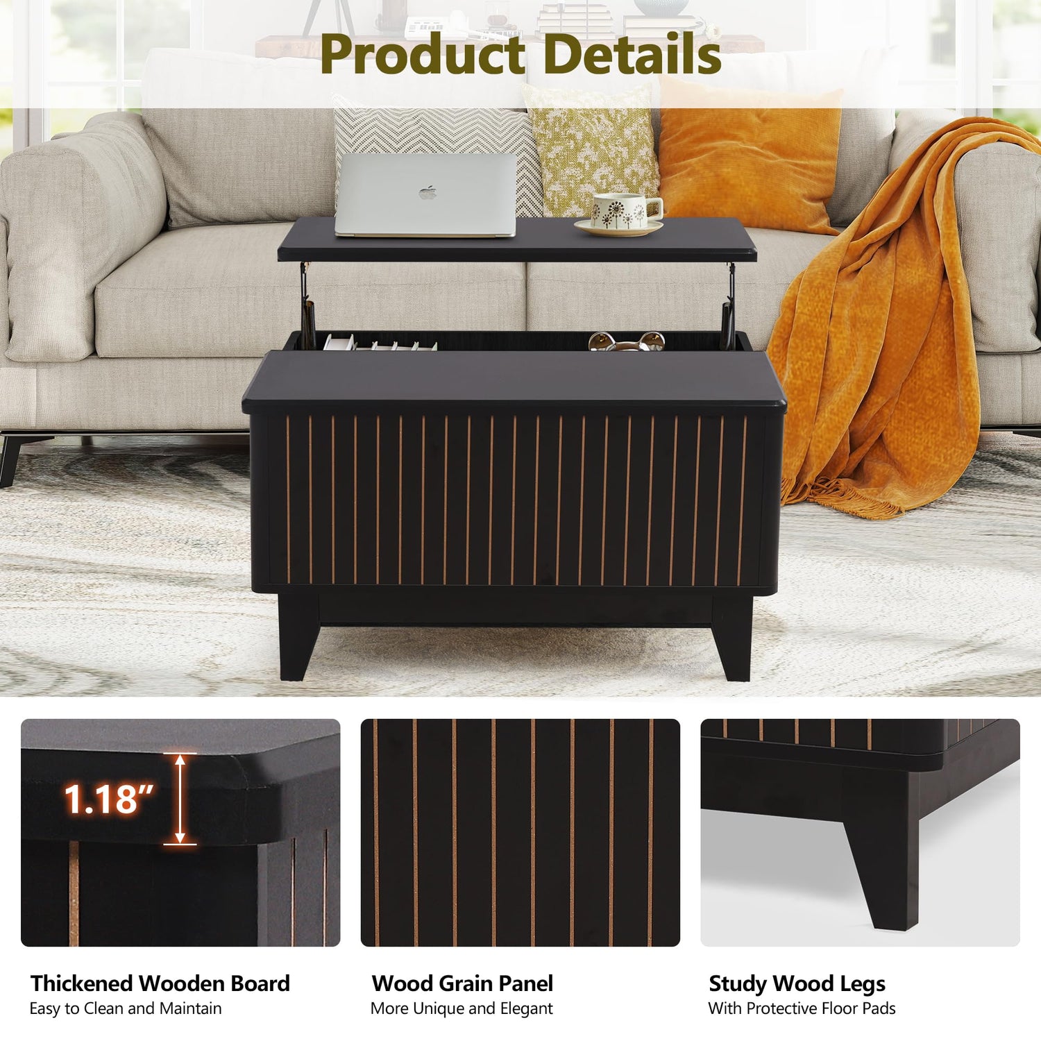 NVETHM Lift Top Coffee Table, Square Coffee Table with Hidden Storage Compartment, Farmhouse Wood Center Table Dining Table for Living Room, Bedroom, Home Office (Black)