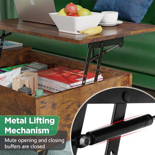 PayLessHere Lift Top Coffee Table with Adjustable Storage and Hidden Compartment Small Wood Coffee Table Center Table for Home Living Room Office Apartment Reception Room,Brown