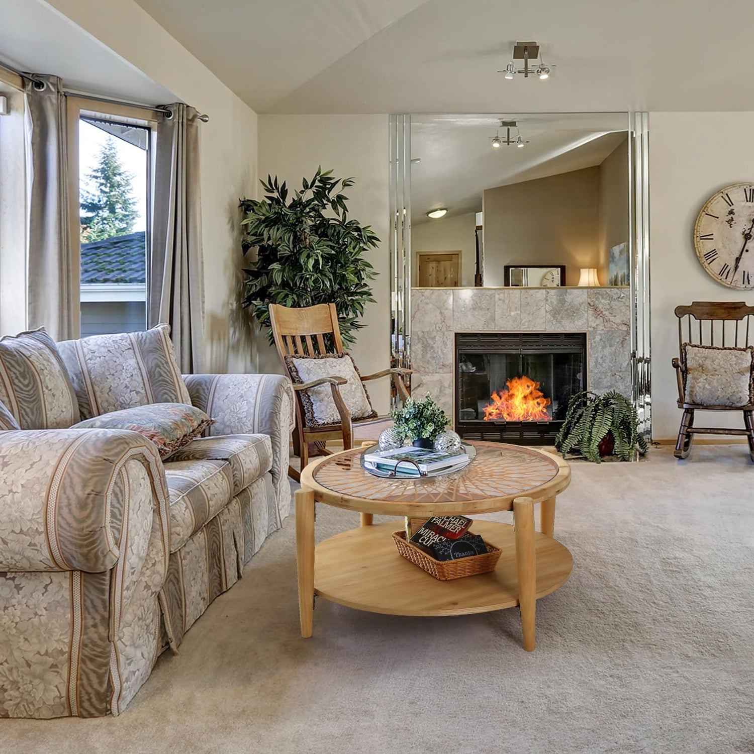 - 【QUALITY MATERIALS】-This original wood coloured farmhouse coffee table is made of high quality MDF, tempered glass, and the hand-woven rattan table top adds a unique touch to the table. Safe material and longer service life.