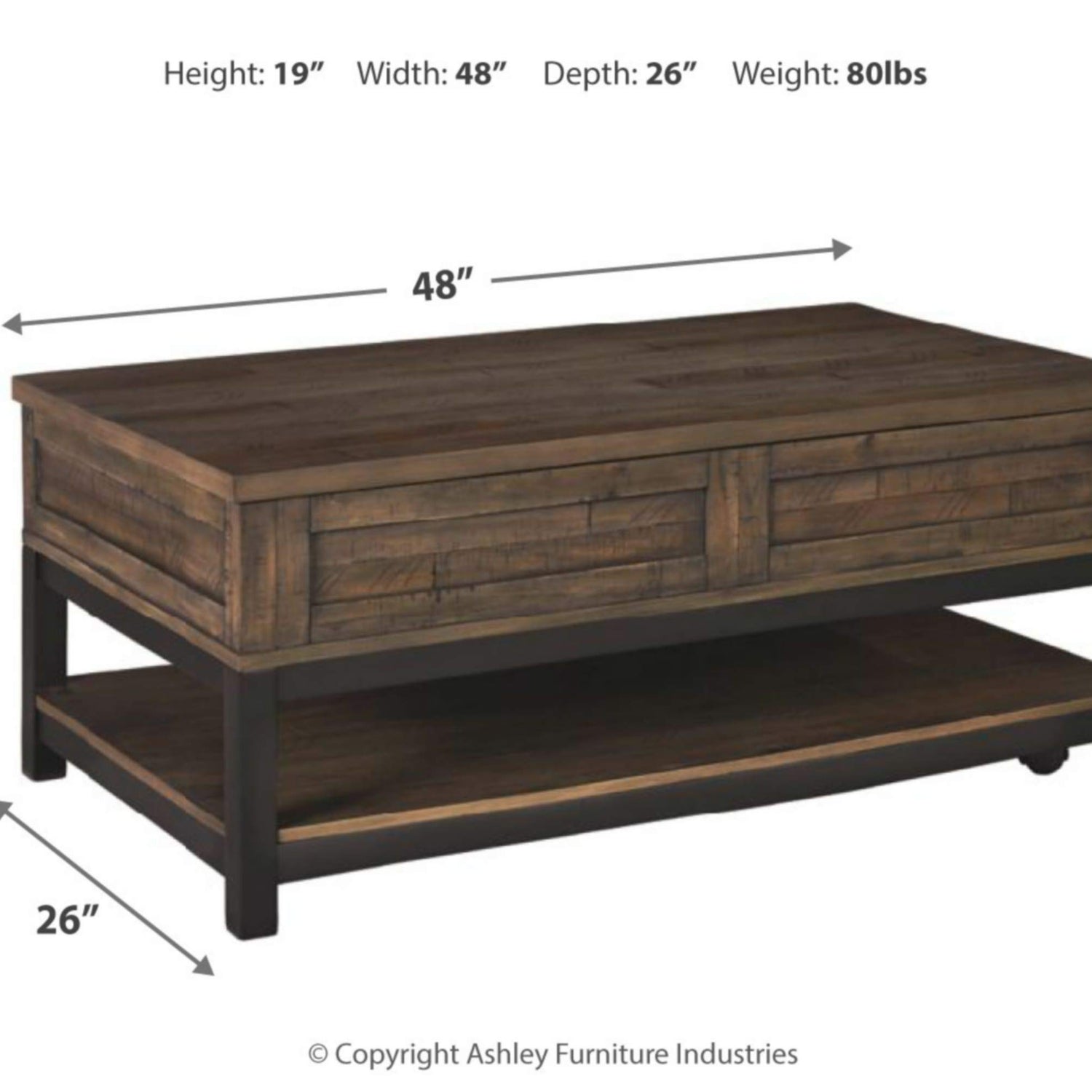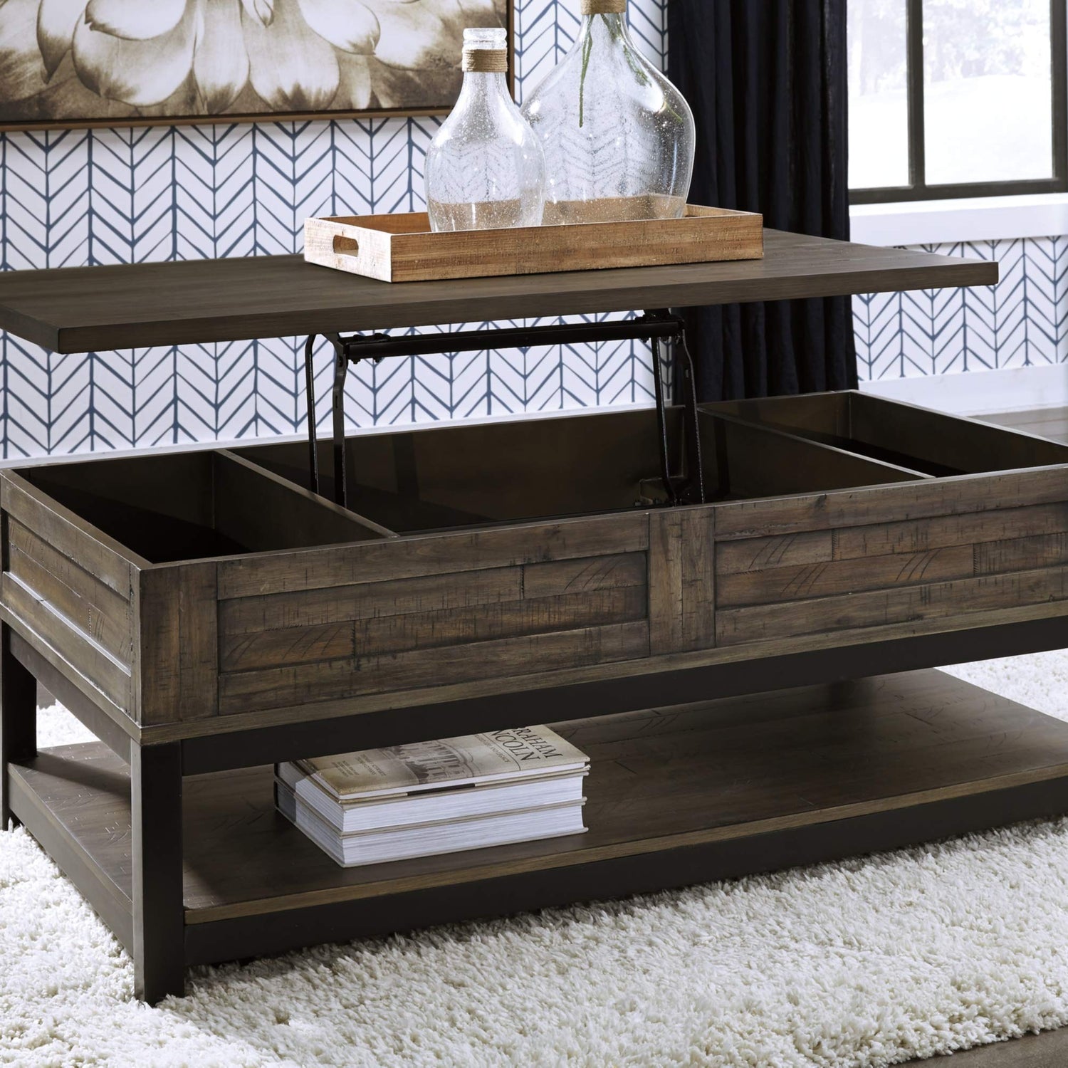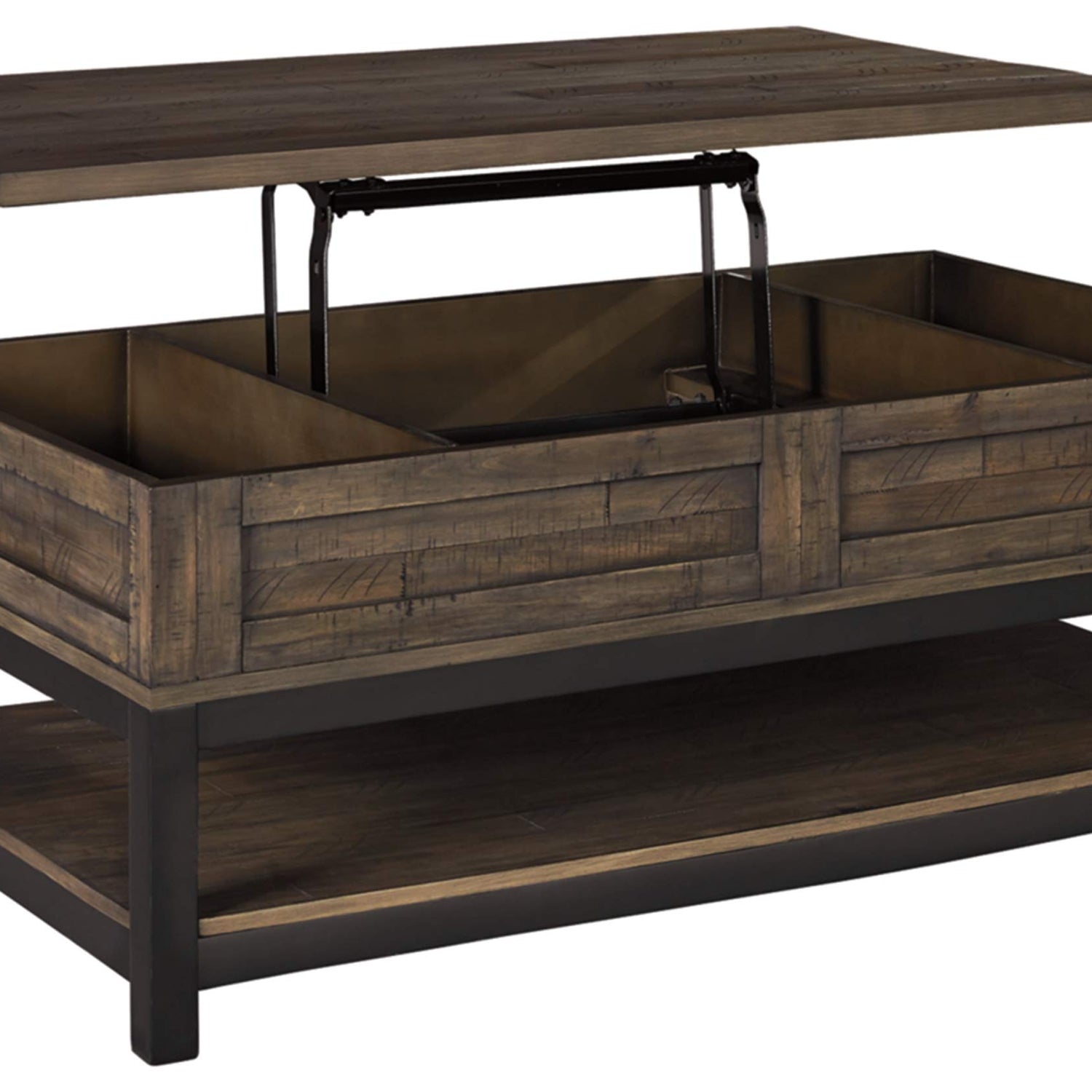 Signature Design by Ashley Johurst Rustic Rectangular Lift Top Coffee Table and Fixed Lower Shelf, Brown