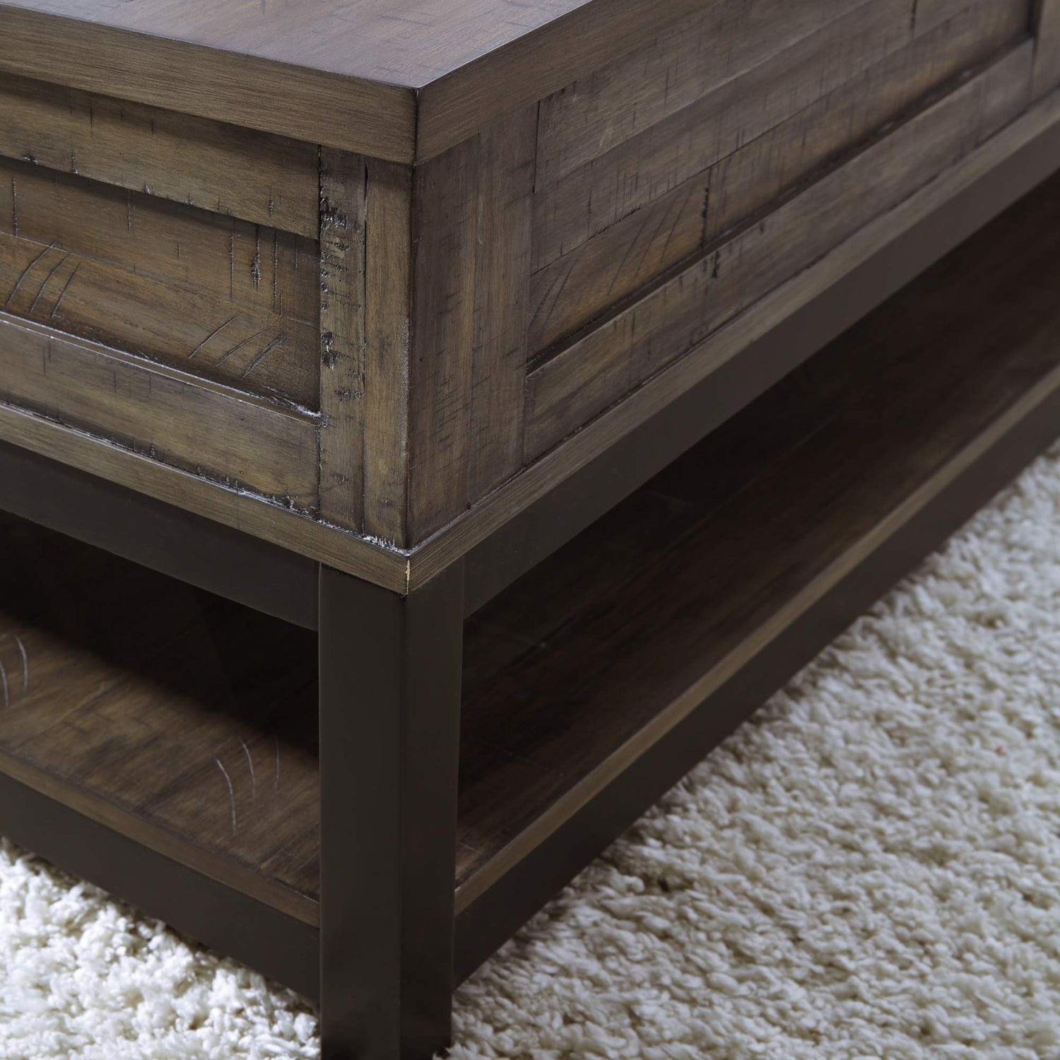 Details: Combining a two-tone finish with a gently distressed texture produces one very distinctive lift top coffee table. Whether your style is modern farmhouse or urban industrial, this coffee table with a spring-lift top is the perfect accent for your rustic retreat. From sculptures to decorative trays to flower vases, coffee tables can hold just about anything. With a wide variety of styles and materials, our coffee tables are a great option if you need durability and versatility. Whatever your needs, we have something just right for you that will bring your space to life. And we go the extra mile to package, protect and deliver your purchase in a timely manner.