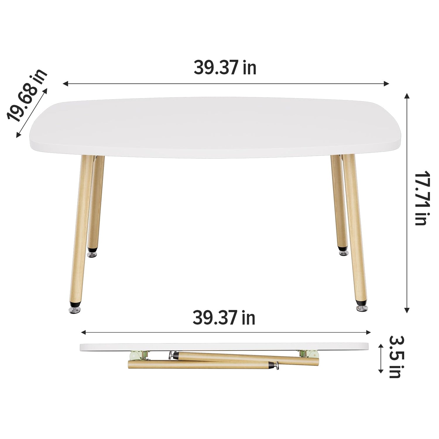 - Portable Small Coffee table: Product dimensions are 31.5"D x 15.7"W x3.5"H when it is folded up,very slim to store easily behind a door, under the bed or couch, small corner space, or RV etc. when not in use, keeping the tidy of the room