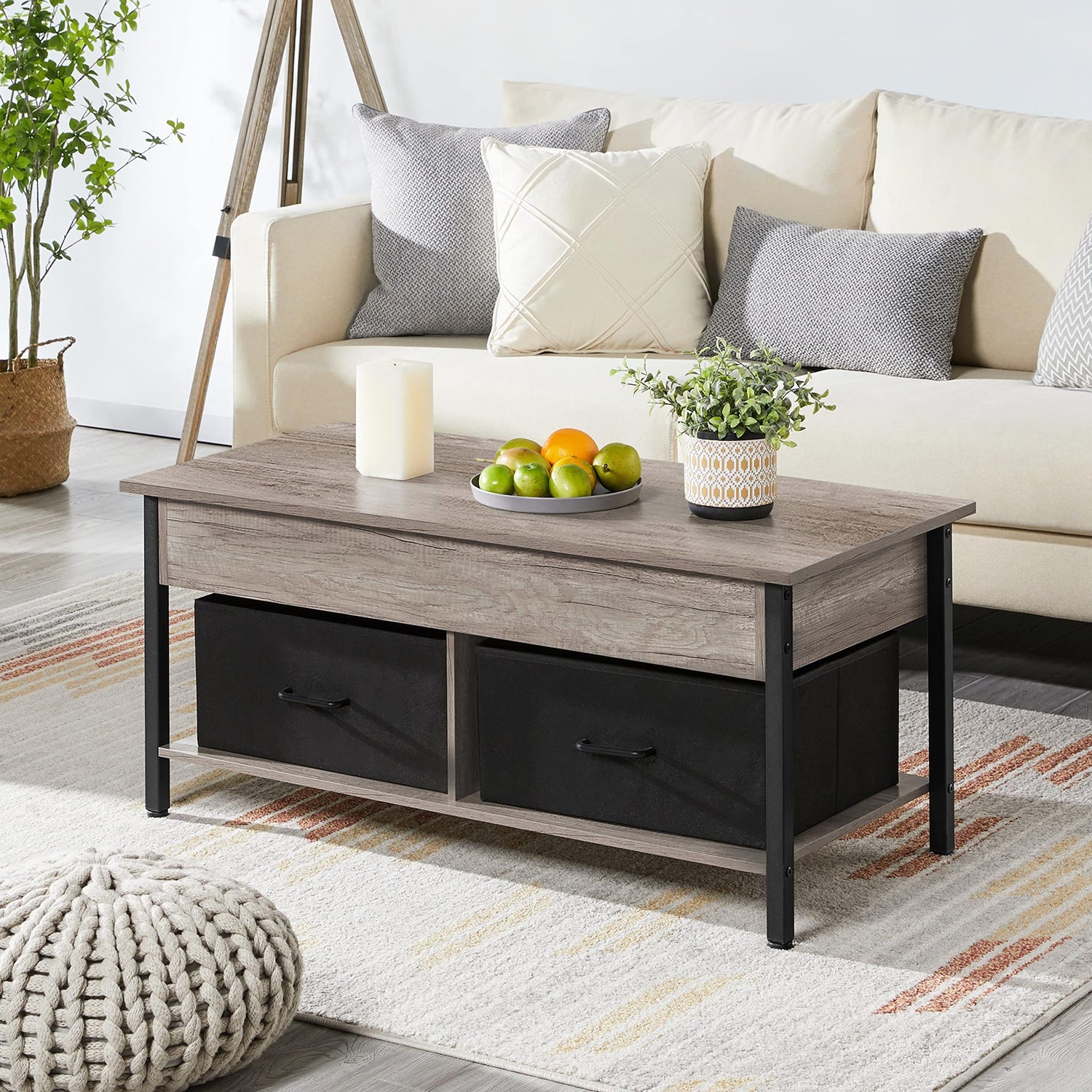 Yaheetech Lift-top Coffee Table with 2 Fabric Baskets & Hidden Storage Compartment, Raisable Top Coffee Table Industrial Center Table with Shelf for Living Room, Gray