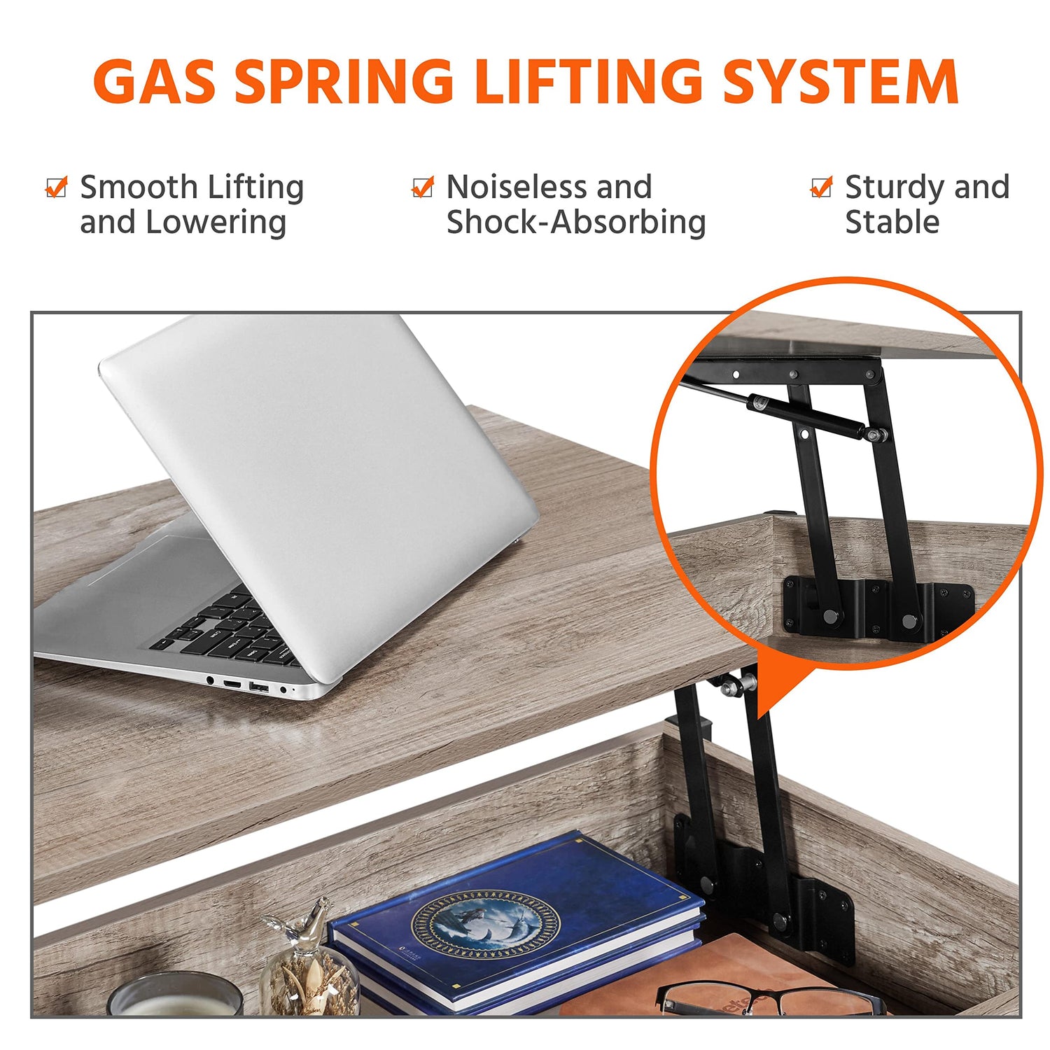 - Lift-top Coffee Table: The tabletop of this coffee table can be effortlessly lifted or lowered down with a high-quality gas spring mechanical device, no longer need to lean forward to use your laptop, write or dine on the table.