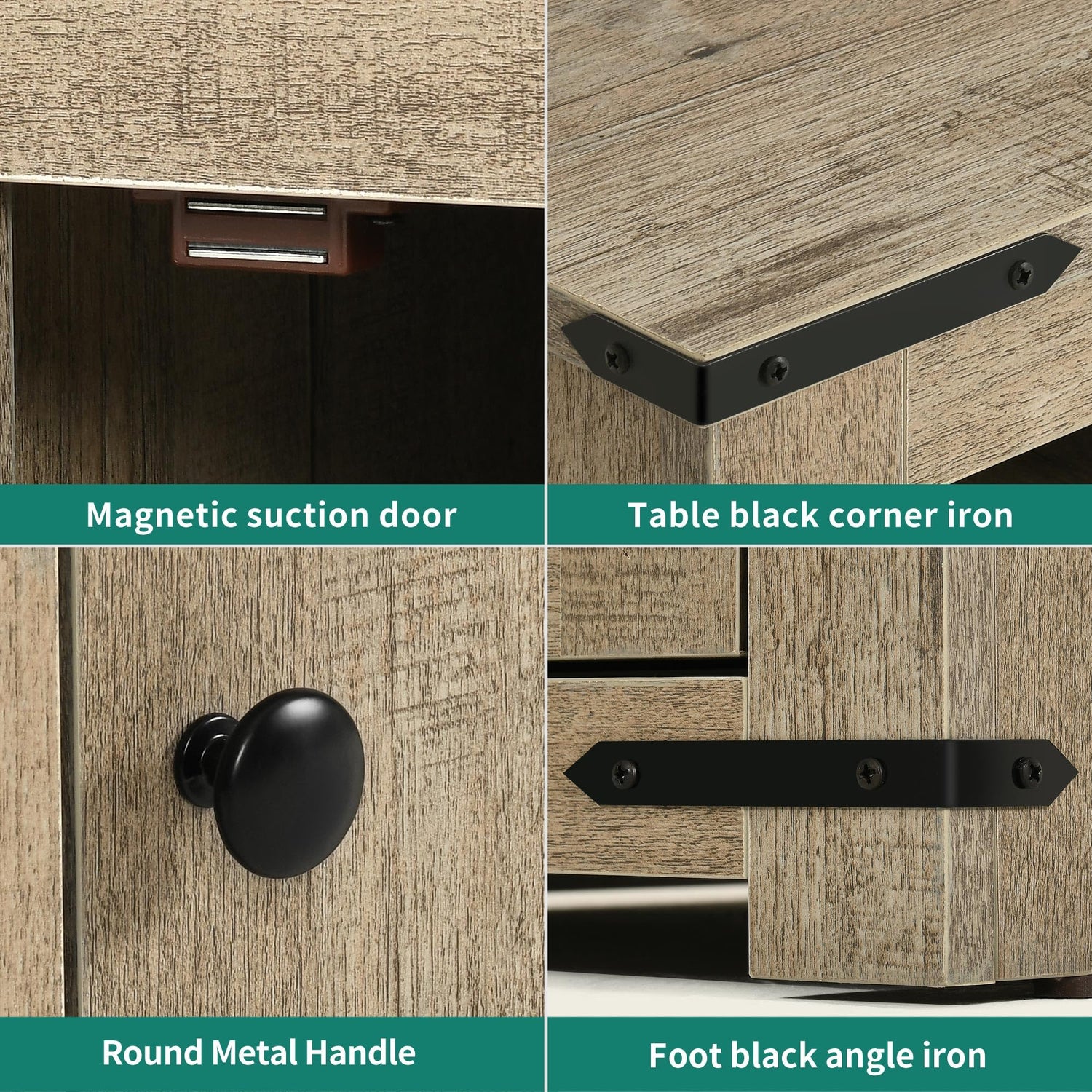 • Grooved Barn Door: The grooved door panel design adds rustic simplicity to the side tables. The black metal decorative strip and door handle seamlessly blend with the cabinet, making it suitable for use as an end table living room or as a bedside table in your bedroom