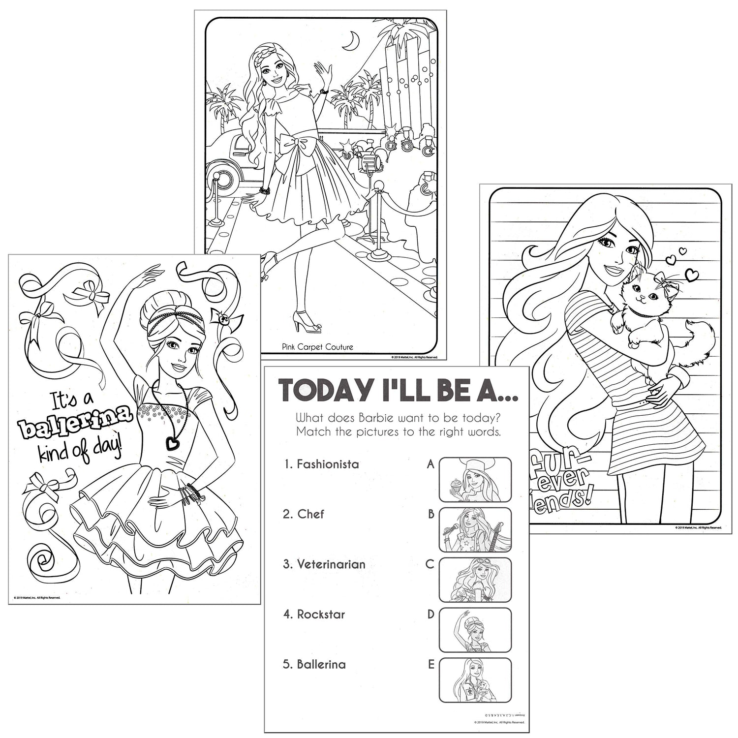 - This Barbie coloring book will provide many hours of fun with games, puzzles, mazes, and coloring activities.