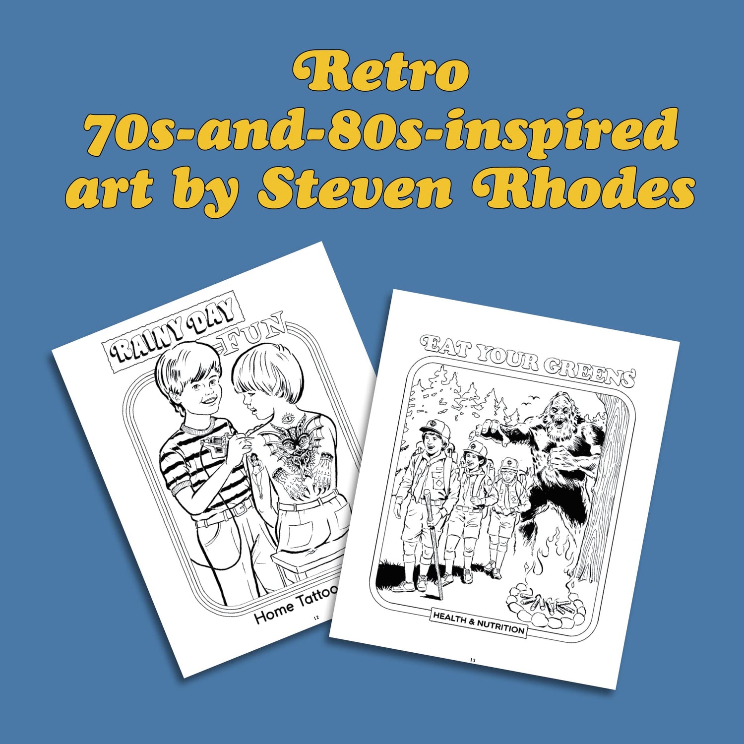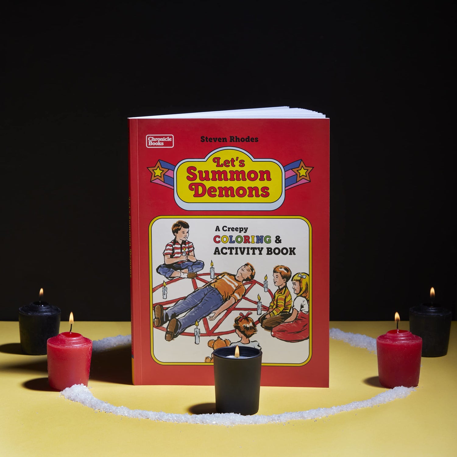 Details: Coloring is spooky, demon-summoning fun in this interactive book from artist Steven Rhodes. Apply your dark artistic talents to these retro 1970s- and 1980s-inspired, wickedly funny pop horror and sci fi pages. . . IF YOU DARE.