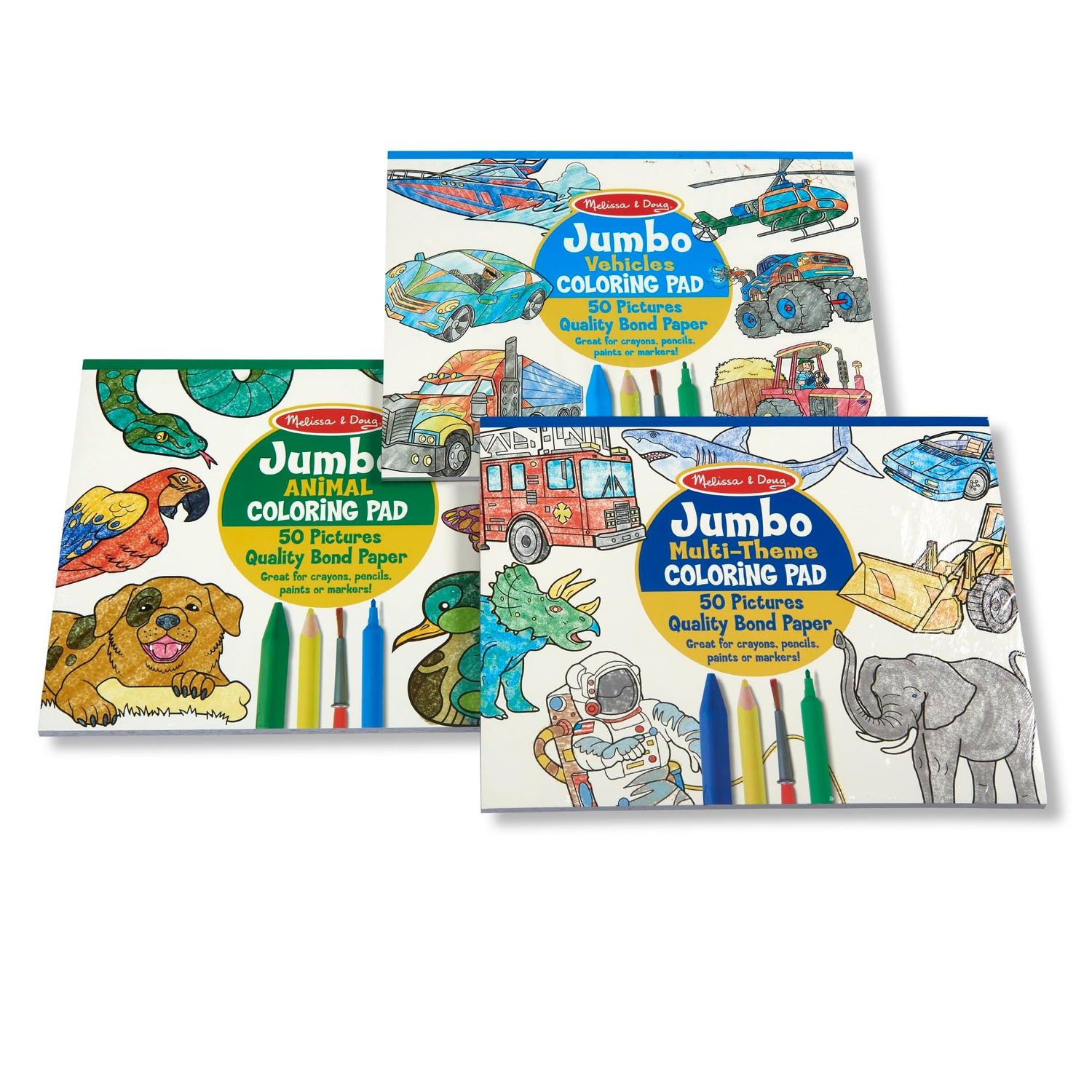 Melissa & Doug Jumbo 50-Page Kids' Coloring Pads 3-Pack - Animals, Vehicles, and Multi-Themed - FSC Certified