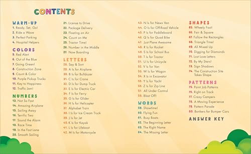 Discover new ways to learn and play with all kinds of exciting and amazing vehicles in this standout among preschool activity books. Whether it's finding digging sites for the excavator or spotting the differences between a pair of superfast jets, these activities help kids get excited about letters, shapes, and more. The only thing they need to get started is a box of crayons!