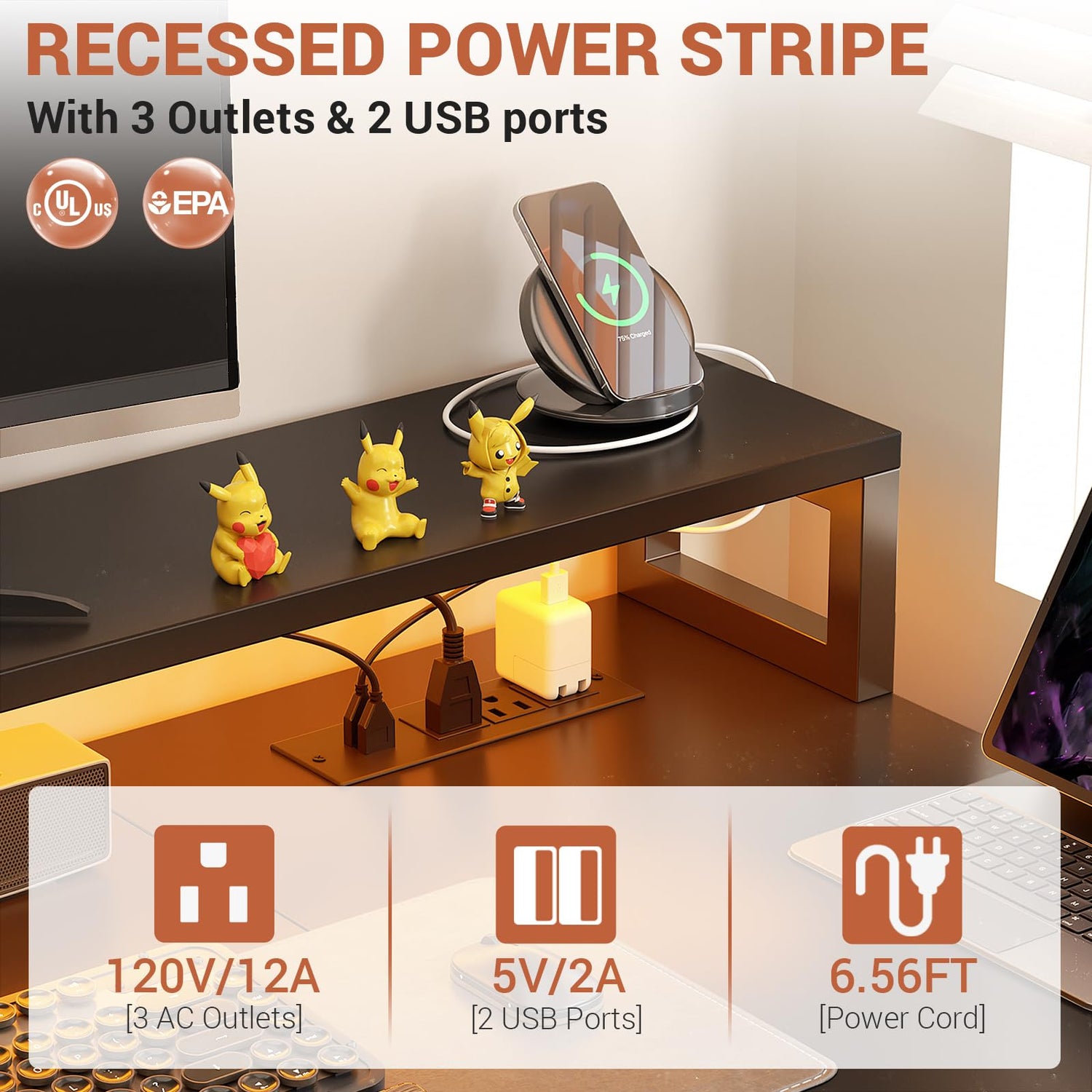 - 【L Computer Desk With Power Outlet】Our l shaped office desk with power outlet features 3 AC outlets + 2 USB charging ports to provide power for up to 5 devices simultaneously. Easily providing convenient charging for your laptop, phone, ps4 and gaming devices. don't need to put additional power strips on the tabletop, providing great convenience for gaming or home office.