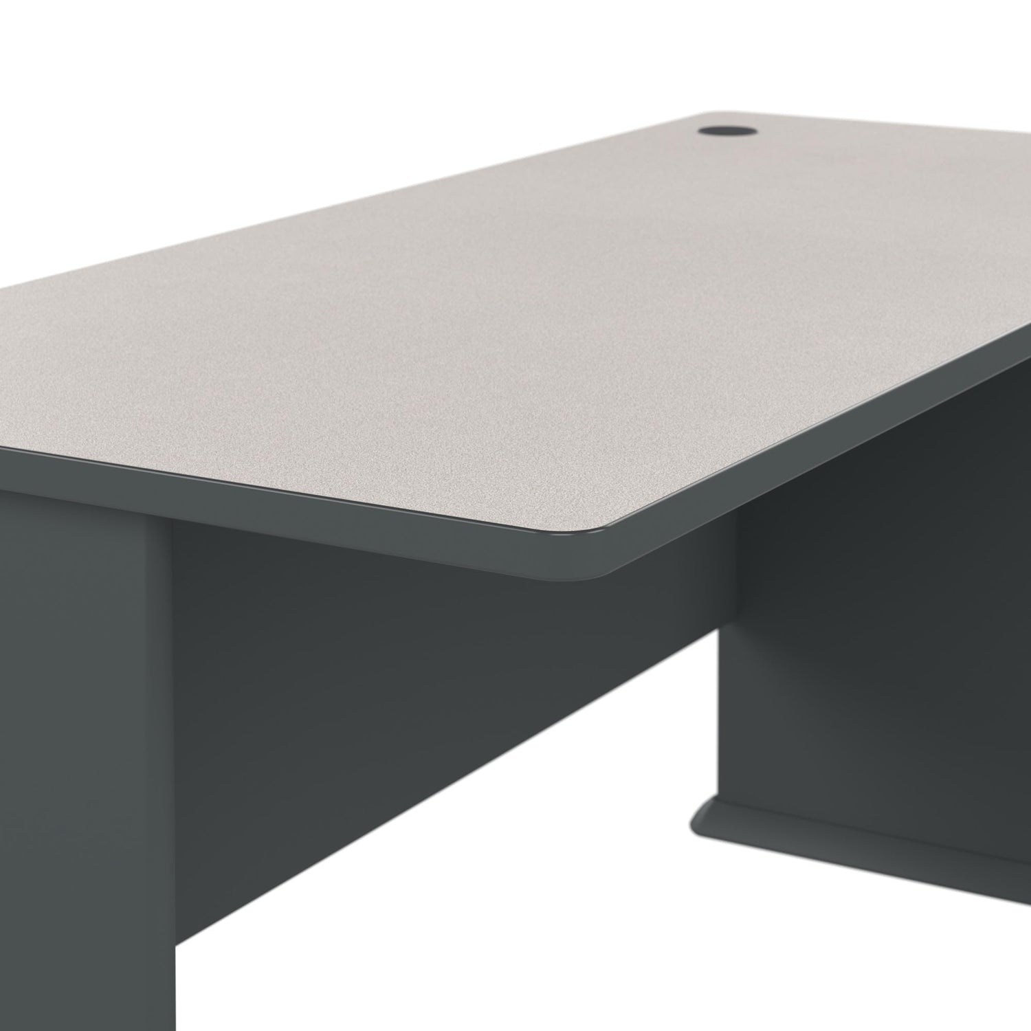 Details: Convenient and comfortable with just the right amount of workspace, the Bush Business Furniture Series A 60W Desk has the commercial quality you need for years of productivity. The durable thermally fused laminate surface fends off scratches and stains while providing room to spread out. Rugged edge banding and thick end panels resist damage as sturdy feet with adjustable levelers ensure stability. The comfortable C-leg design offers loads of legroom, and wire management grommets organize cables to keep them out of your way. Series A completes your multi-person workspace, classroom, home office or anywhere in between with a variety of configuration options. Featuring multiple two-tone finishes and contemporary styling, this commercial office furniture adapts to your surroundings. Customize any environment with a full line of affordable products, all backed by a 10 Year Warranty. Series A withstands the rigors of a 40-plus hour week and meets ANSI/BIFMA quality test standards. American made with U.S. and imported parts.