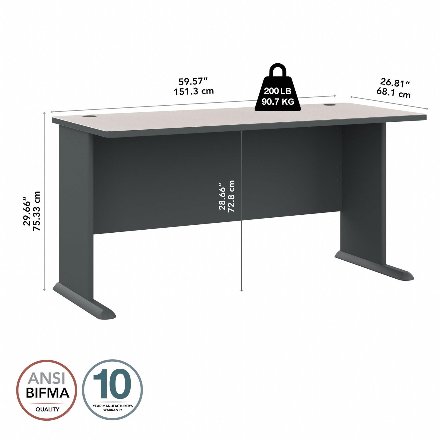 Bush Business Furniture Series A 60W Computer Desk in White Spectrum and Slate, Large Office Table for Home or Professional Workspace