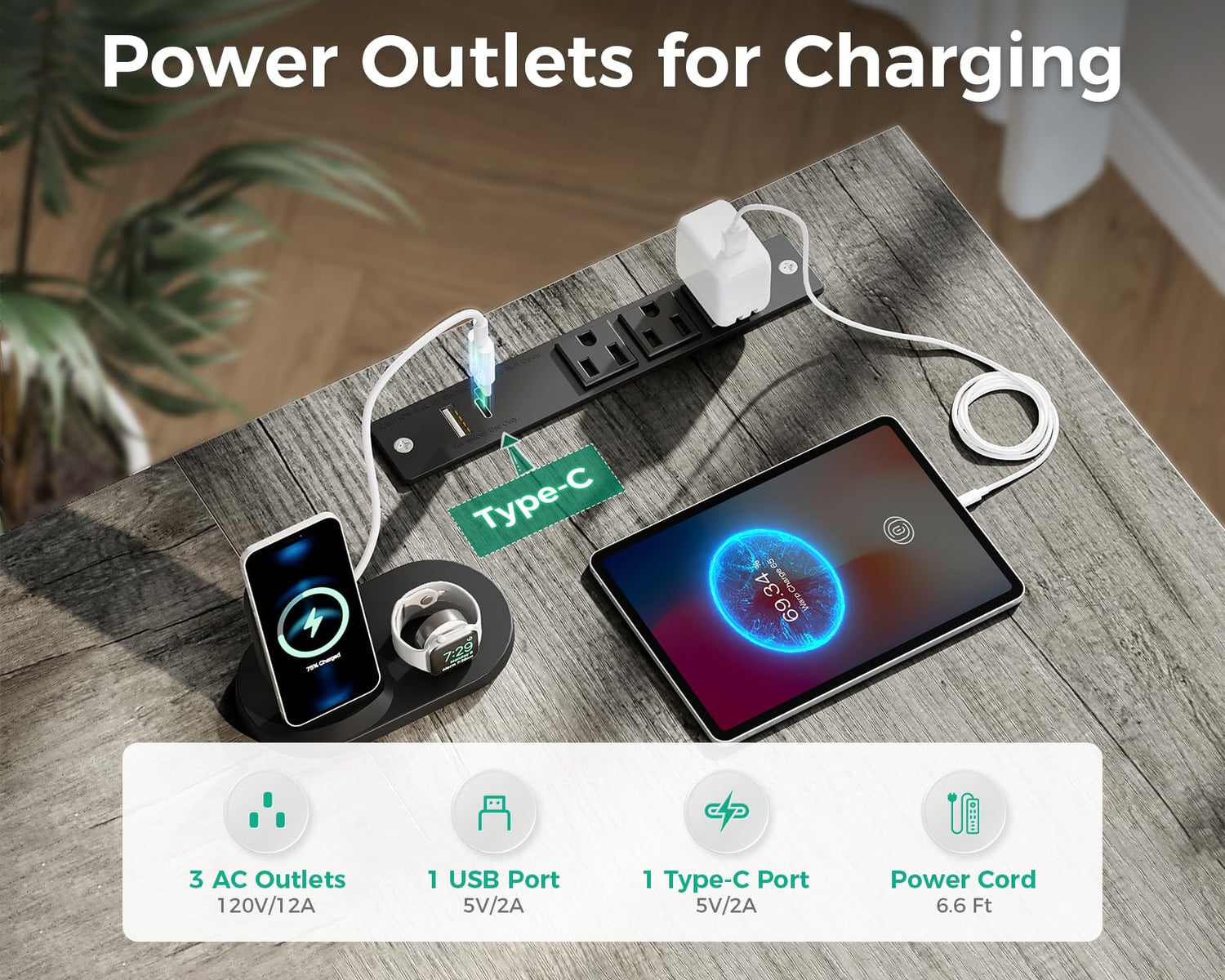 • 【Built-in Power Outlet】This l shaped desk is equipped with 3 AC outlets, 1 USB port, and 1 Type C port. You can conveniently charge your smart phone, gaming gear or Bluetooth devices when playing computer games or working from home.