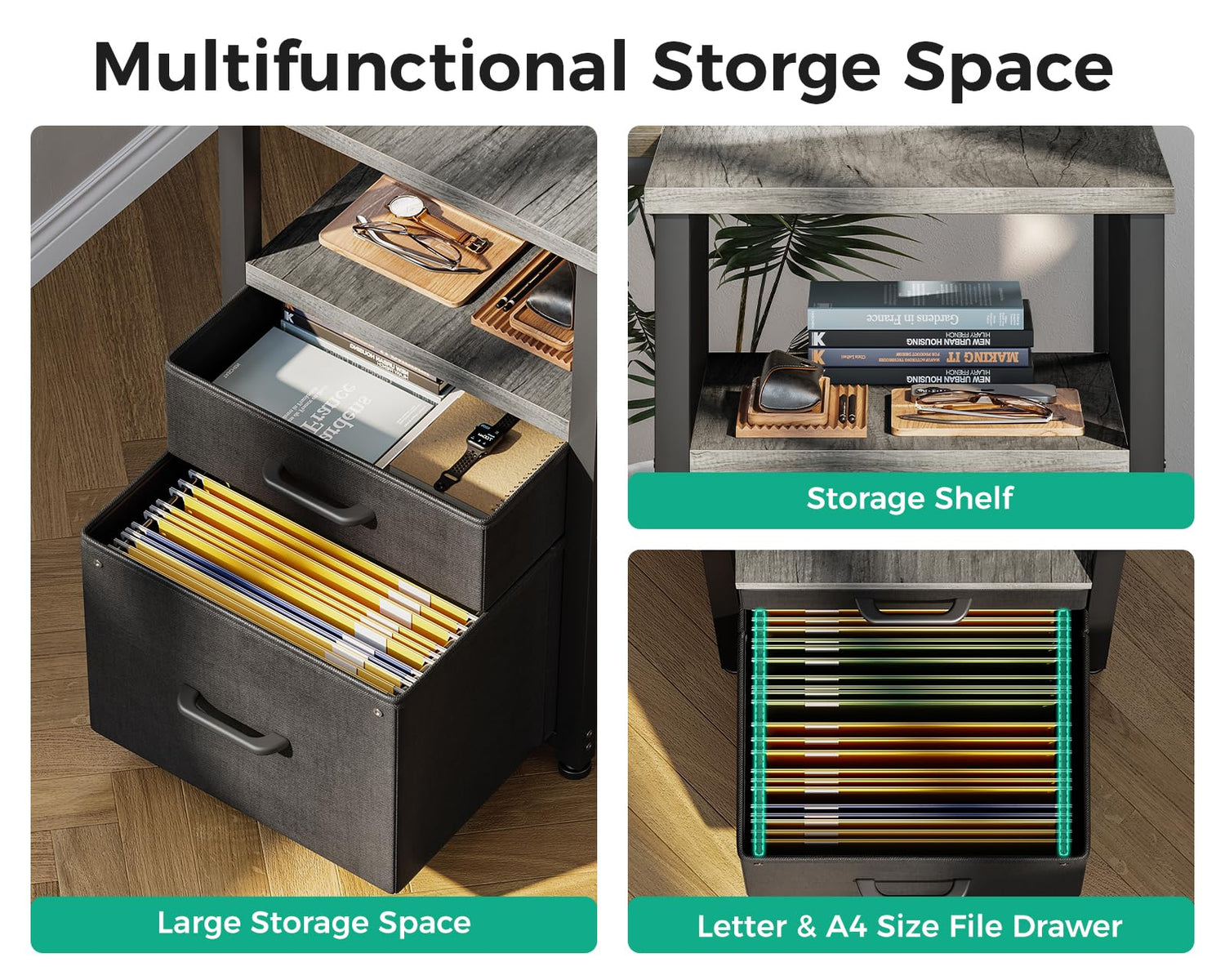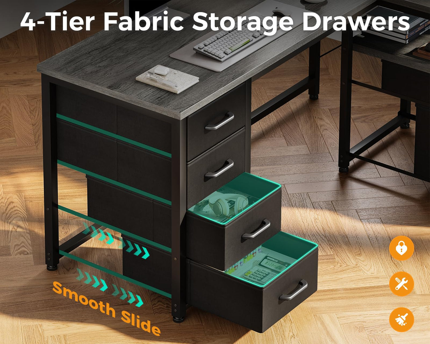 • 【Computer Desk with Drawers & Storage Shelf】The computer desk owns five fabric drawers and one capacious fabric file drawer. You can put your office supplies or gaming equipments in to keep them in order and dust-free. The side storage shelf provides extra storage space for your books.