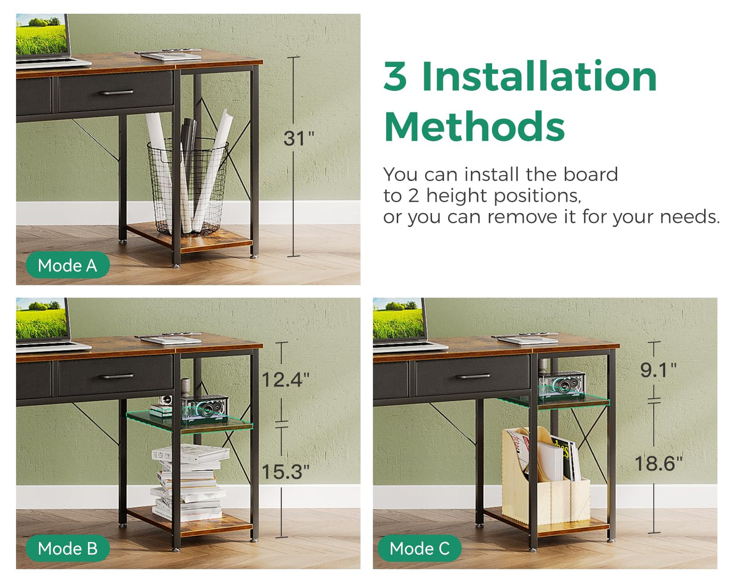 - 【Desk with Drawers】This work desk has two large capacity fabric drawers, which are durable and easy to assemble. You can put your office supplies or personal effects in to keep them in order and dust-free. With this writing desk, you can always maintain a tidy and organized workspace.