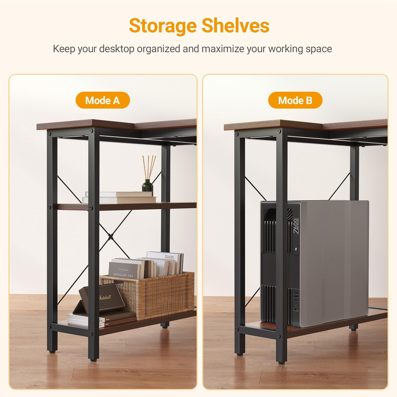 - Spacious Storage: L-shaped desk features roomy shelves and a storage bag, perfect for organizing office supplies and creating a tidy workspace