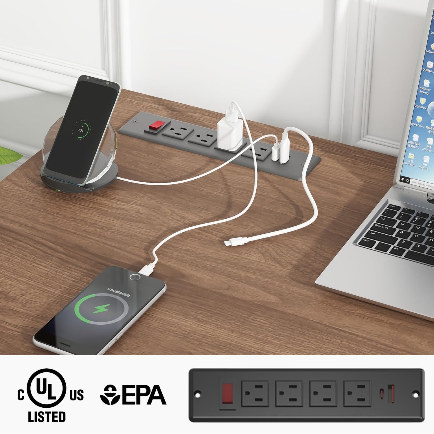 - 【Convenient Charging Hub】Our desk features a convenient charging station with 4 outlets and 2 USB ports, capable of powering up to 6 devices simultaneously. The included on-off switch ensures safe electricity usage and offers a one-button power-off function for added security. Perfect for charging cell phones, tablets, laptops, and other electronic devices, this charging hub keeps your workspace tidy and organized.