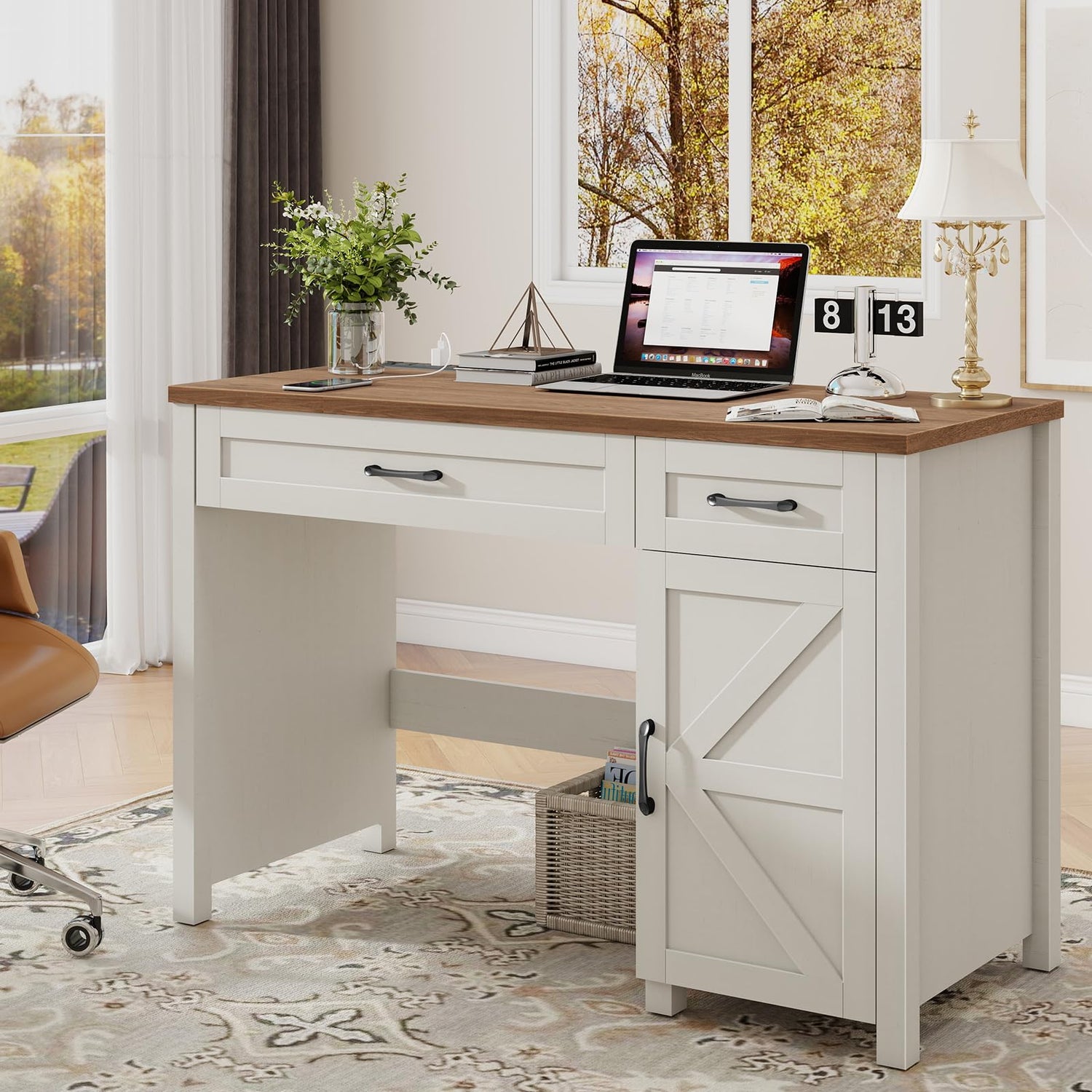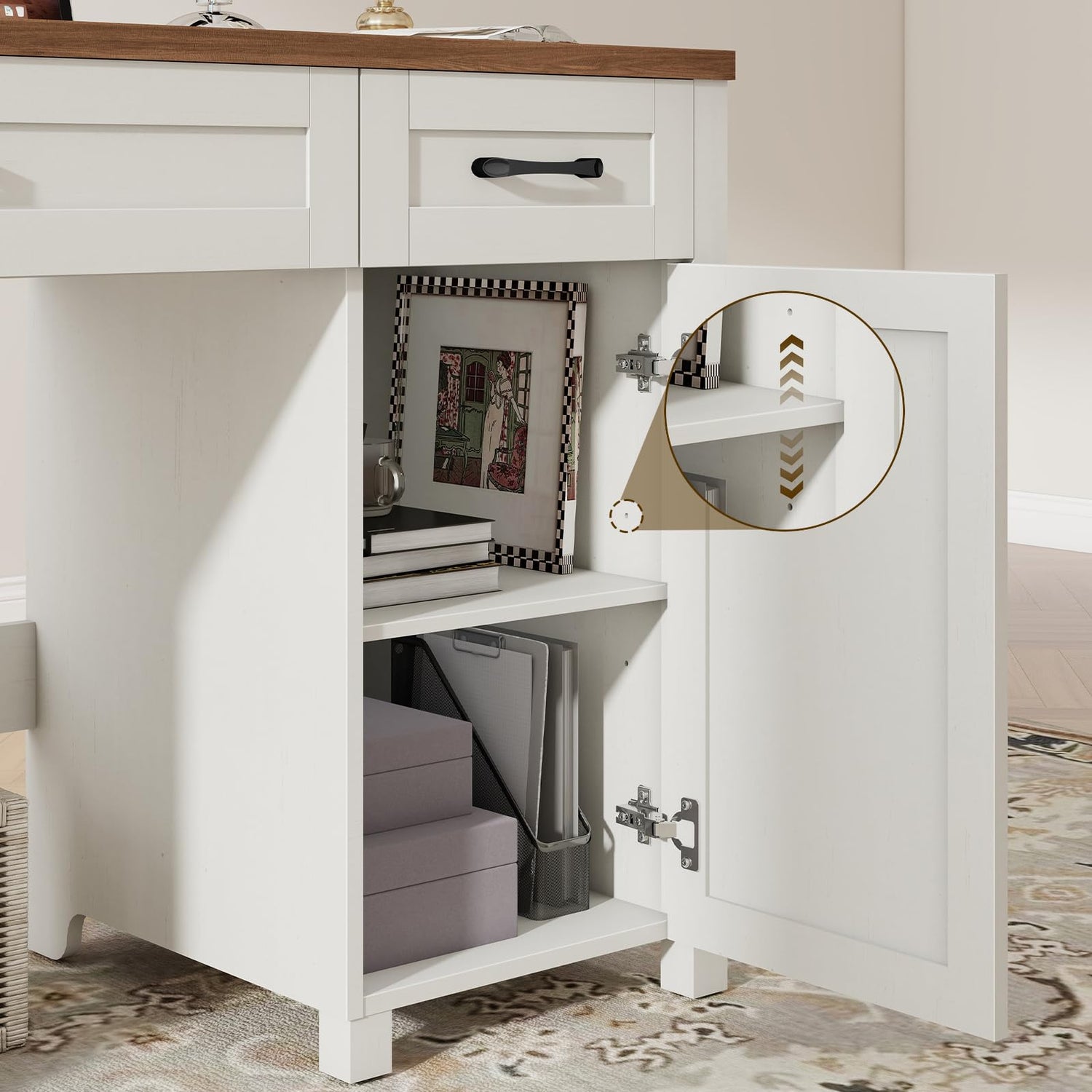 Farmhouse 47" Executive Desk, Computer Desk with Drawers and Storage Cabinet, Workstation Computer Desk for Home Office and Study.(Unique White)