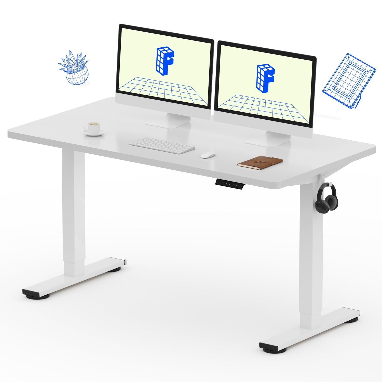 FLEXISPOT EN1 Whole Piece Standing Desk 55 x 28 Inches Stand Up Desk Workstation Home Office Computer Height Adjustable Desk (White Frame + White Top, 2 Packages)