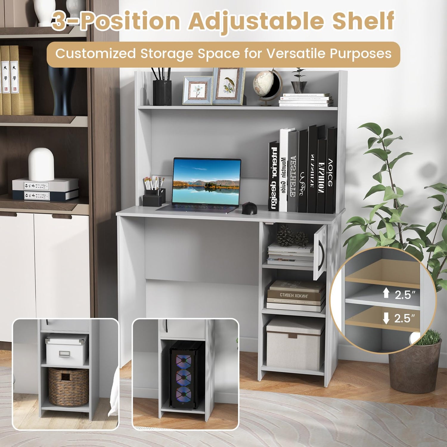 Giantex Computer Desk with Hutch, Home Office Desk with Storage Cabinet & Adjustable Shelf, 2 Cable Holes, Modern Laptop PC Desk Computer Workstation for Working, Study Writing Desk for Bedroom, Gray