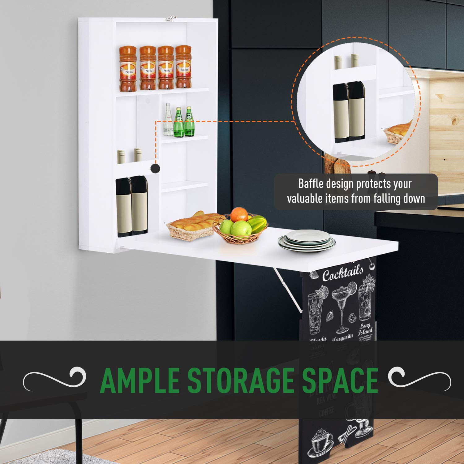 Details: Make the most of your existing space with this stylish and affordable wall mounted desk with storage. This foldable computer desk also doubles as a working surface and storage area anywhere you need it. Transform an empty spot into your own personal work, study or writing area. This modern home office desk provides everything you need with multiple storage compartments and shelves for customizing the look of your space. It even has a blackboard for a quick note! If you'e been wishing for more room to get things done or just want to clean up some clutter around your home, then this lightweight, convenient wall mounted folding table provides a neat and orderly solution. When space is limited, HomCom is big on ideas to maximize your living area, dorm room, or tiny house!