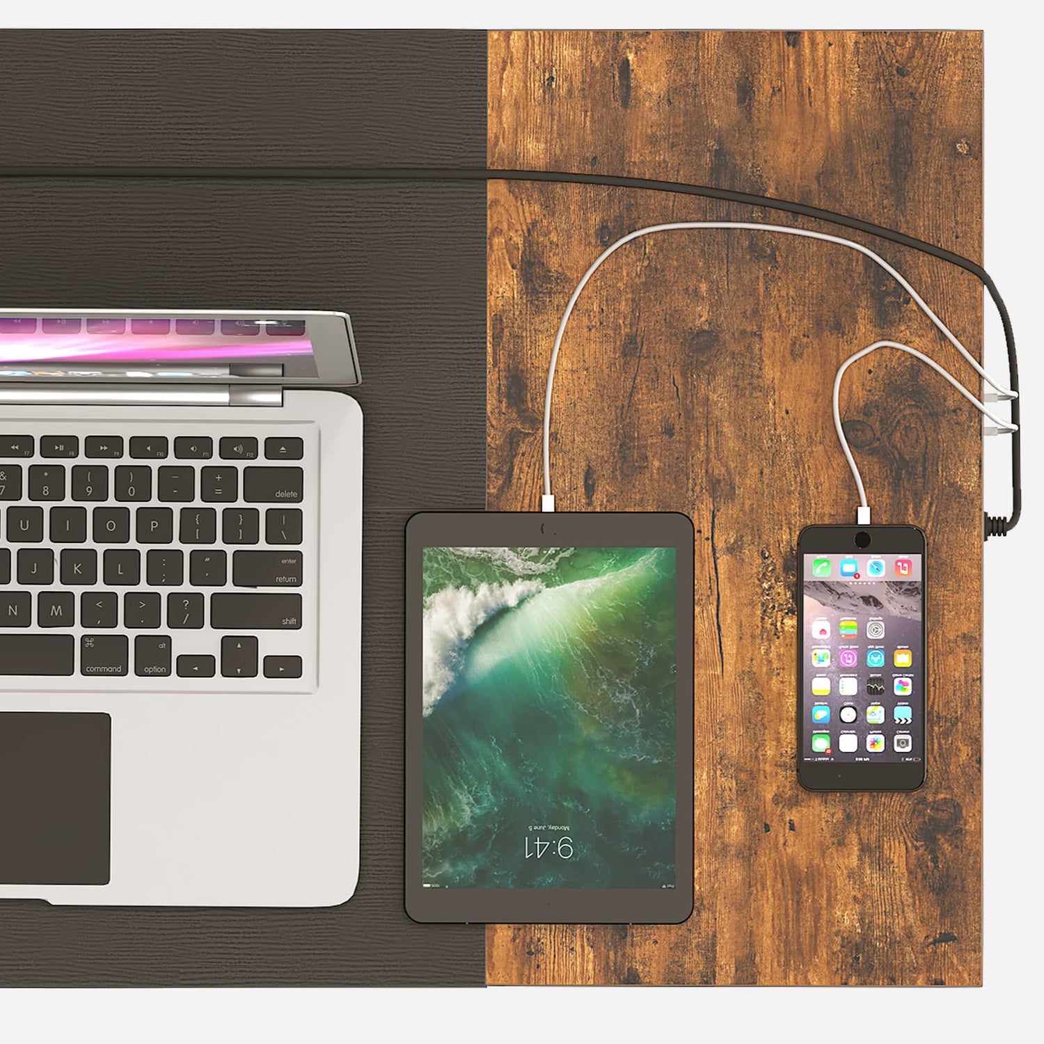 HOOBRO Computer Desk, Home Office Desk with Power Outlet, Modern Study Writing Desk with 3 Hooks for Study Room, Home Office, Sturdy and Stable, Easy to Assemble, Rustic Brown and Black BF40UDN01