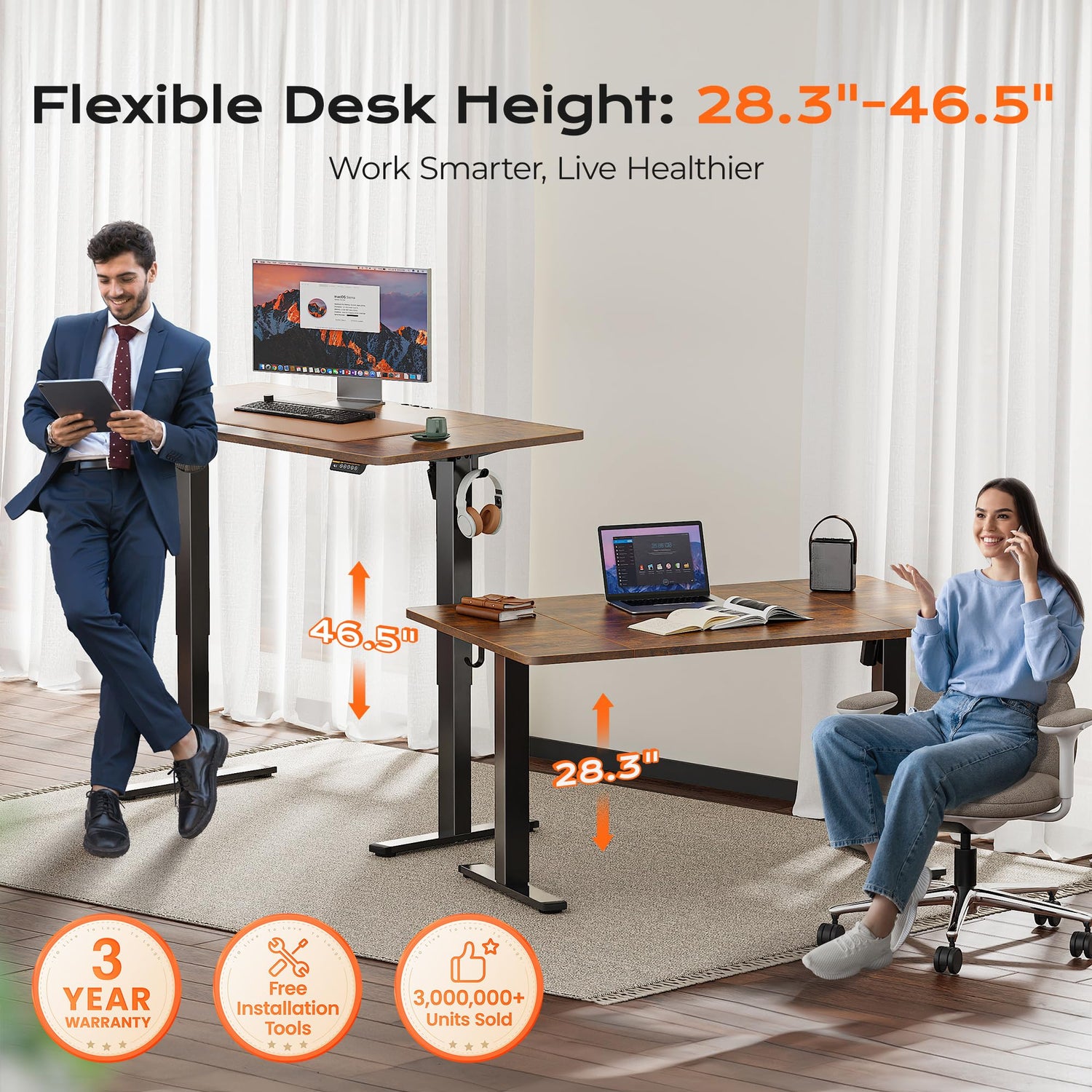 - 【Multi-Function Intelligent Keypad】Operating Voltage: 110 - 220V. Featuring a sleek LED display and easy-buttoning keypad, this adjustable standing desk offers 3 customizable height presets and precision up-and-down controls. This standing desk for walking pad allows you to switch between sitting and standing at the press of a button, with an adjustable height range from 28.3" to 46.5". Say goodbye to sedentary habits and hello to improved focus, energy, and posture with this electric standing desk