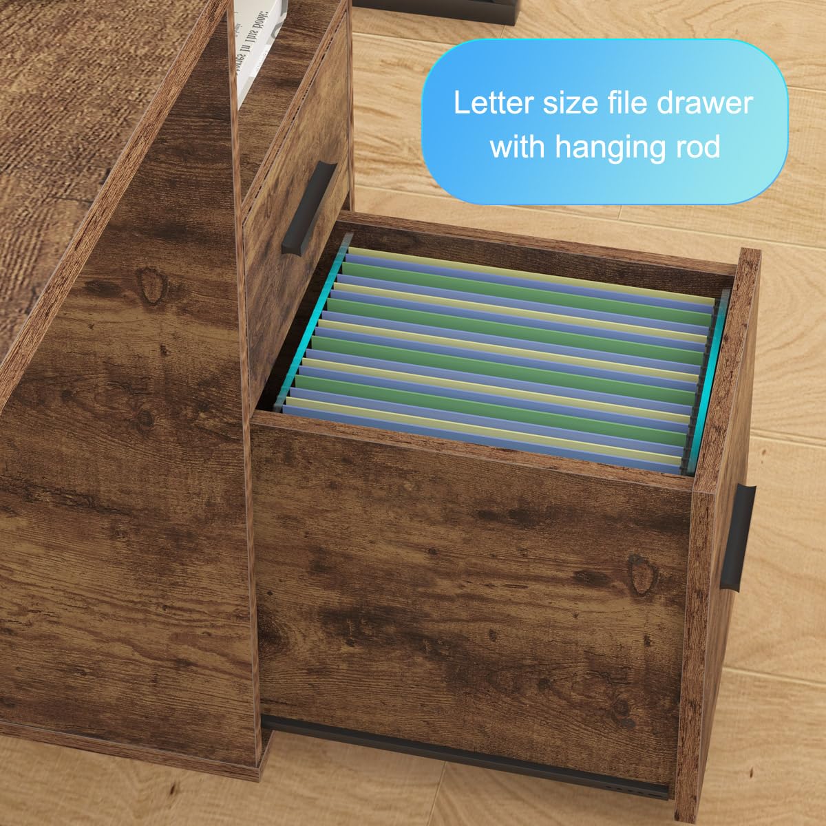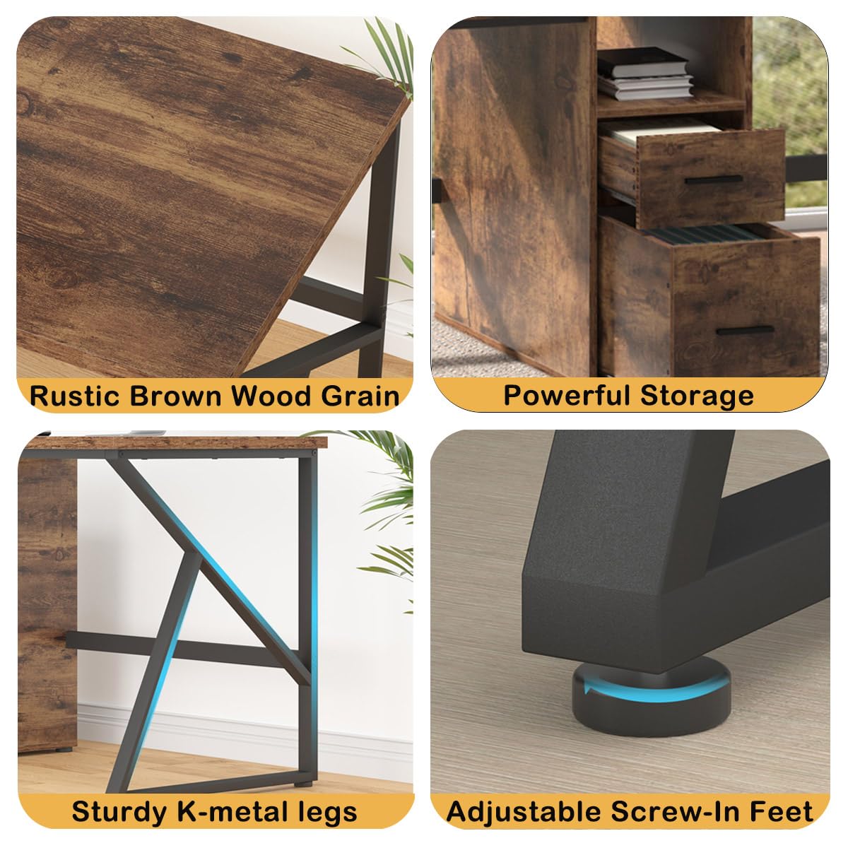 - [Flexible and Practical Design] - The wood desk features a practical and simple design that combines two desks and a storage shelf, making it perfect for constructing a comfortable workstation at home. This office desk with a rustic brown industrial-style design, which looks robust and powerful, giving people a sense of stability and high quality. The desk is suitable for children's bedroom, living room, office, and work space.