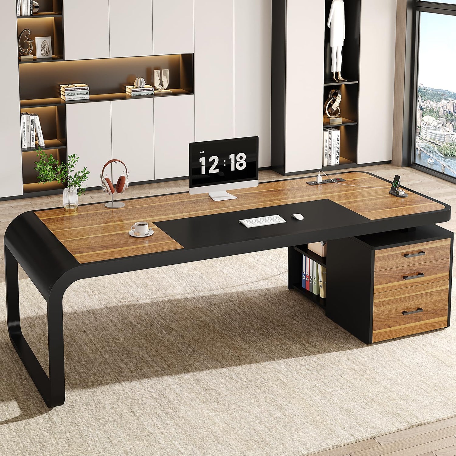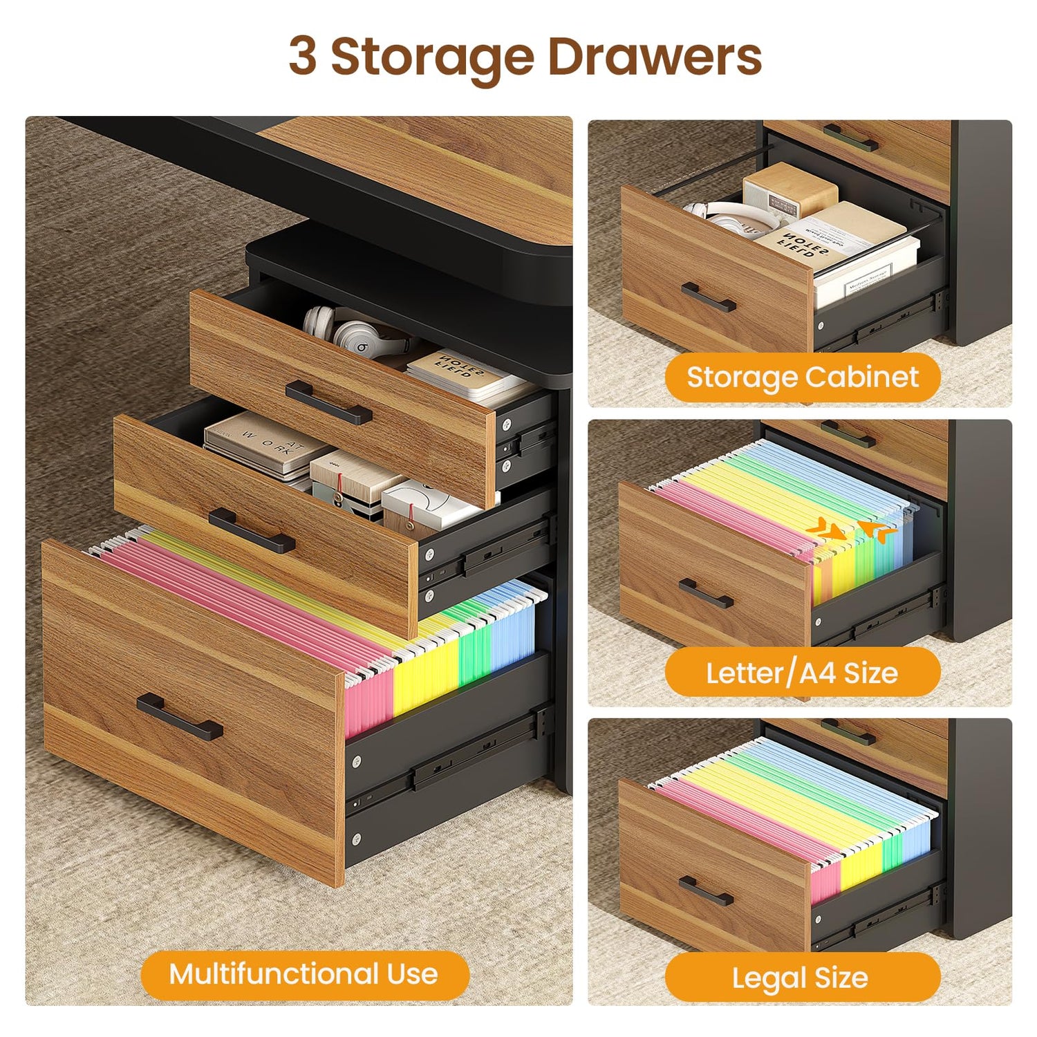 • 【Modern Executive Desk】This executive desk combines functionality with an elegant curved desktop design that not only offers the practical performance of modern furniture, but also adds beauty to your room. The decent and elegant look makes this desk with filing cabinet look great in your space.