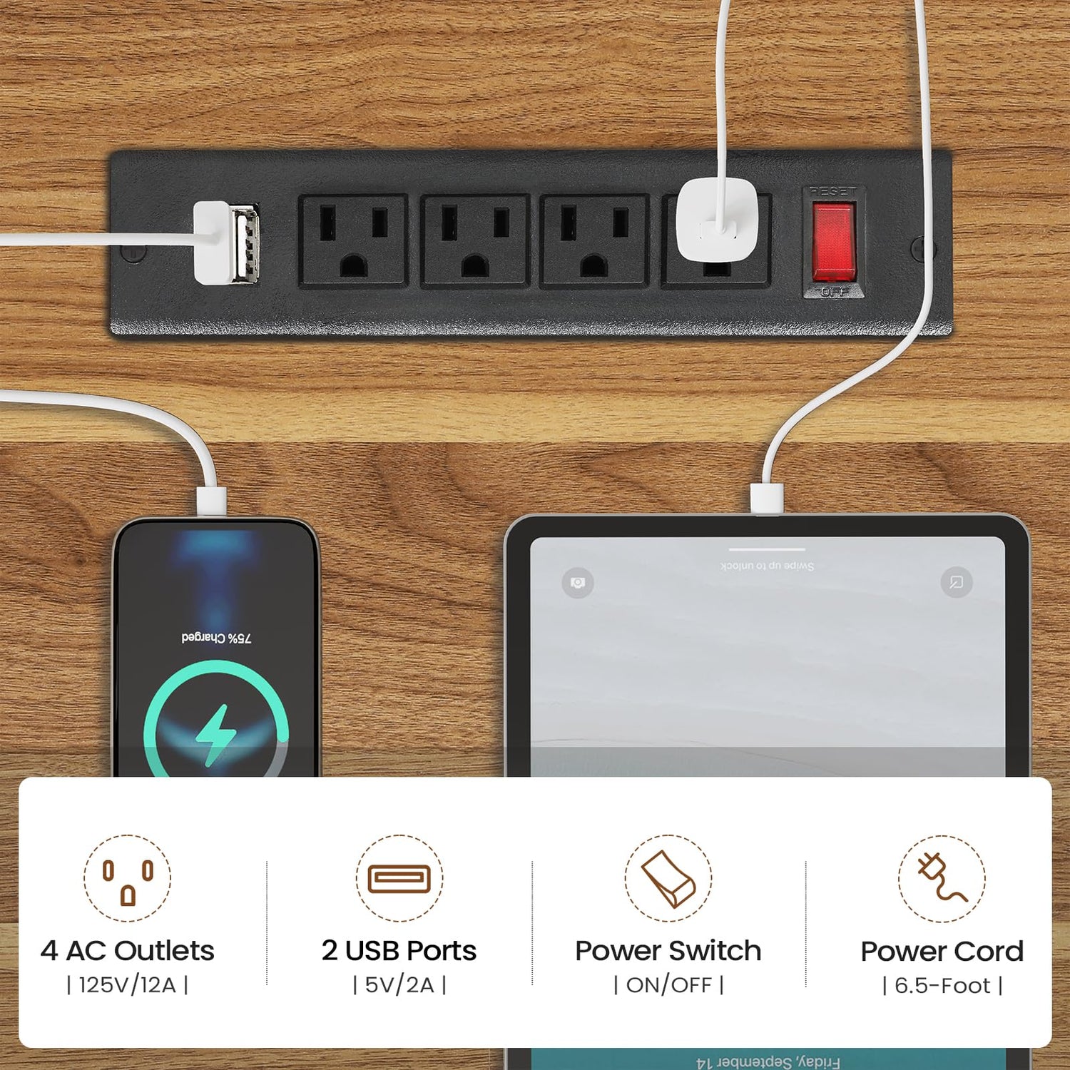 • 【Built-in Charging Station】Our charging station includes 4-Outlet & 2 USB Ports to provide power for up to 6 devices simultaneously. Also includes an on-off switch, thanks to the on-off switch, one-button power off to ensure safe electricity use, which strengthens security.