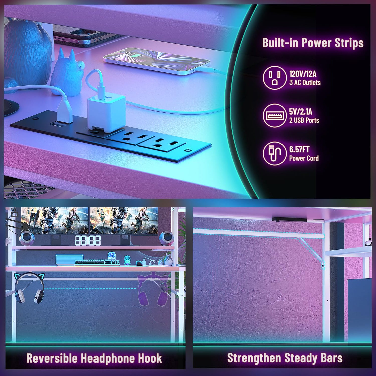 • Gaming Desk L Shape with Outlets - With extra power outlets and USB connectors built into the desktop, this computer desk will make your setup even more convenient. It's handy and could help to charge your multiple gaming systems. Good to place your monitors, speakers, mic, mouse & keyboard.