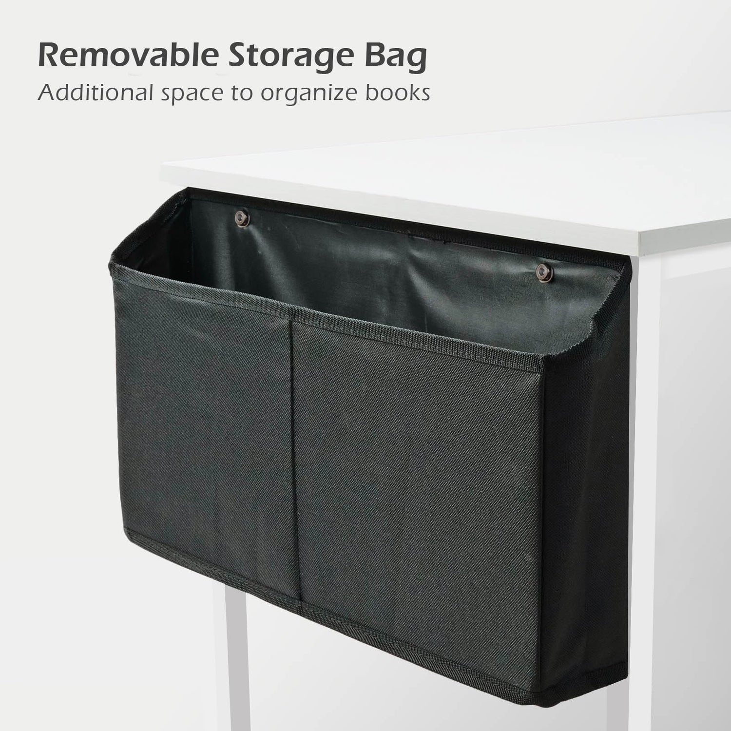 • Modern Simple Style Design: Desk is made of thick particle board with scratch-resistant, anti-collision and waterproof, protect home office desk surface from daily wear and tear, white desktop match white metal frame, with storage bag and Headphone hook ( Both Removable ) .