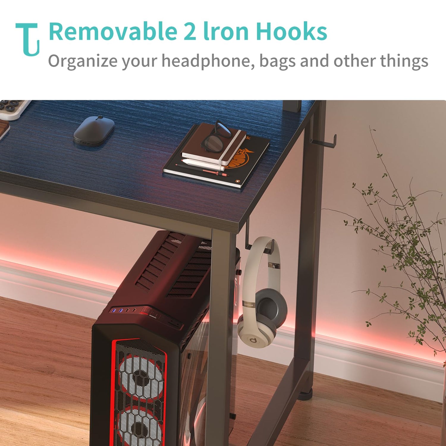 - Modern Simple Style Design: Desk is made of thick particle board with scratch-resistant, anti-collision and waterproof, protect home office desk surface from daily wear and tear, with storage bag and 2 headphone hook(Both removable).