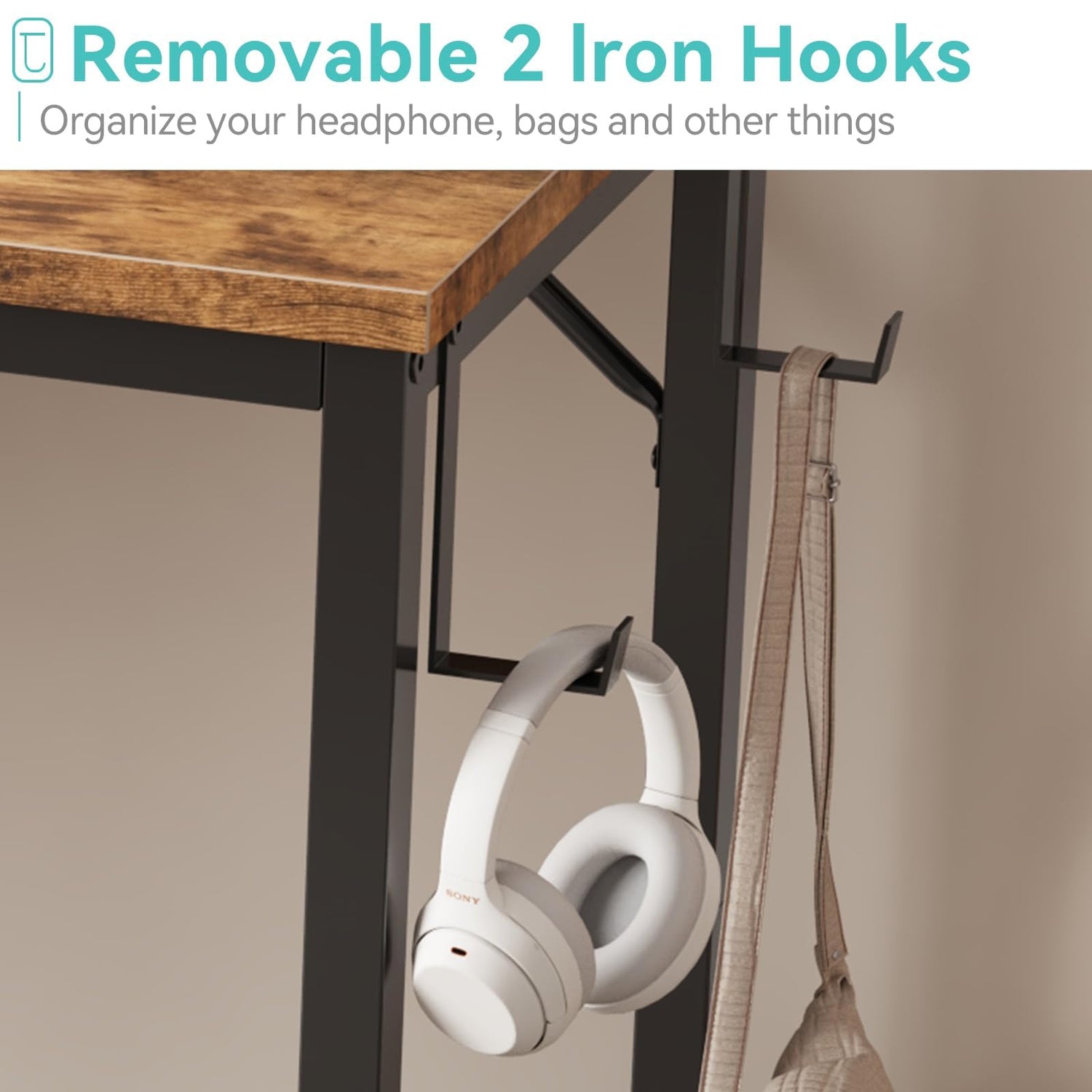 - Efficient Storage Design: Little Desk with 1 removable storage bag and 2 iron hooks to keep your workspace tidy. Perfect for organizing books, headphones, supplies, and tech accessories