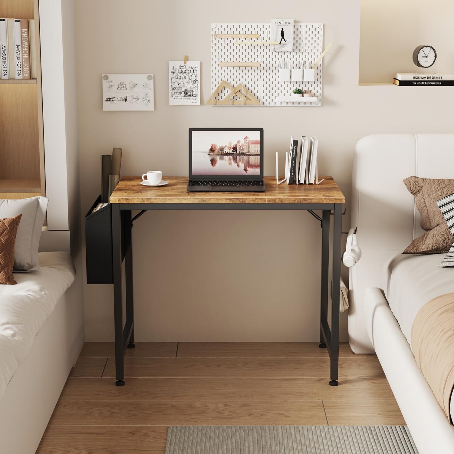 Lufeiya Small Desk for Small Spaces, 32 Inch Kids Girls Study Writing Desks for Bedroom, Simple Modern Laptop PC Little Side Table with Storage Bag Headphone Hooks, Rustic Brown