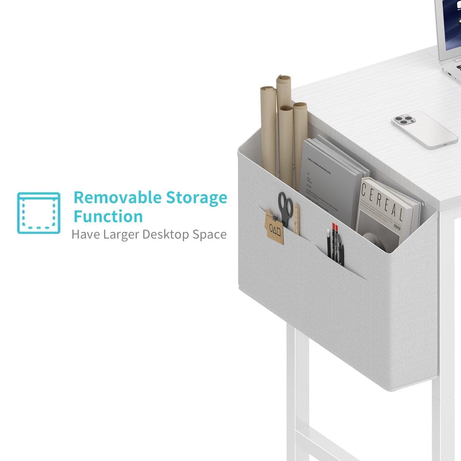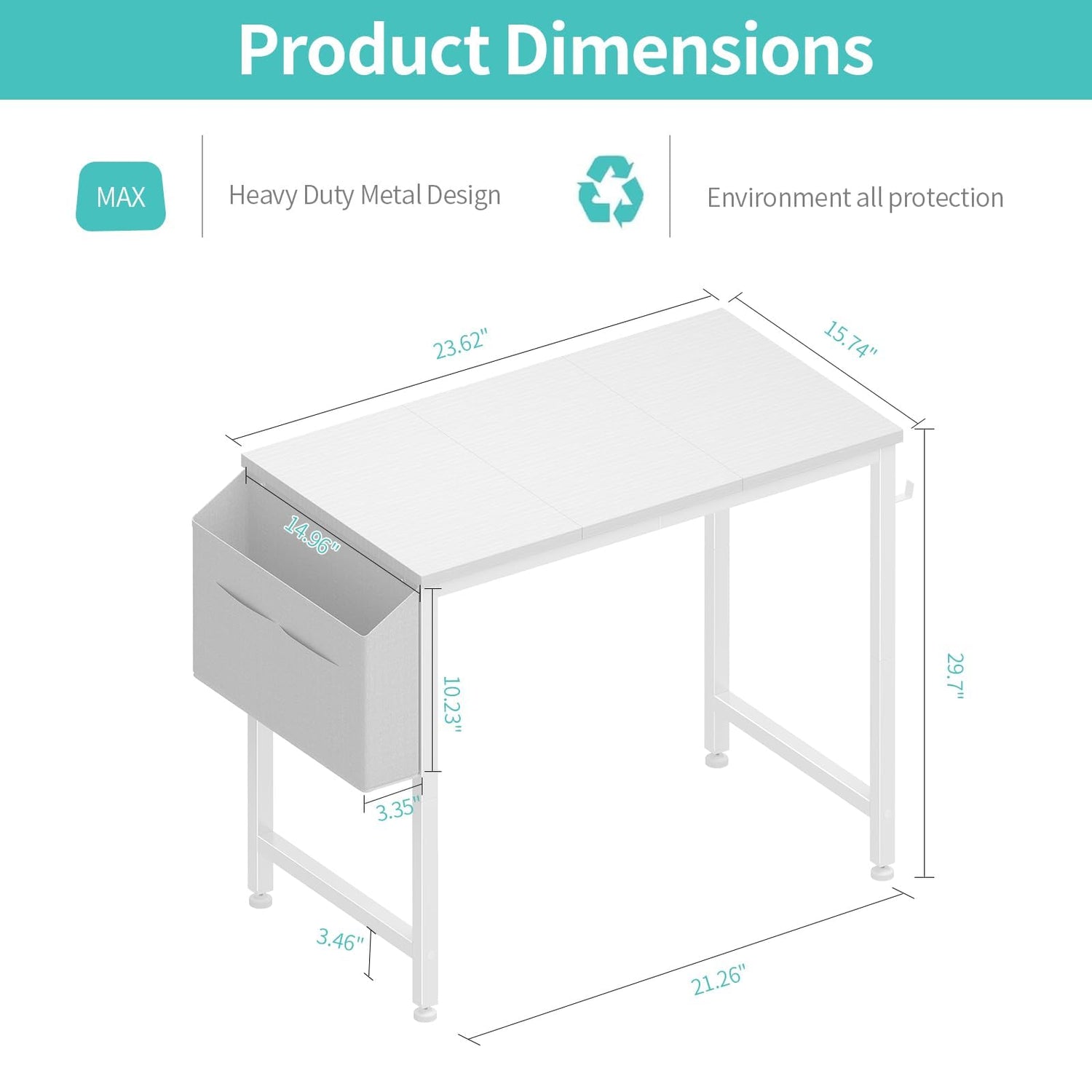 Lufeiya Small White Desk for Small Spaces, 32 Inch Kids Girls Study Writing Desks for Bedroom, Simple Modern Laptop PC Little Side Table with Storage Bag Headphone Hook, White