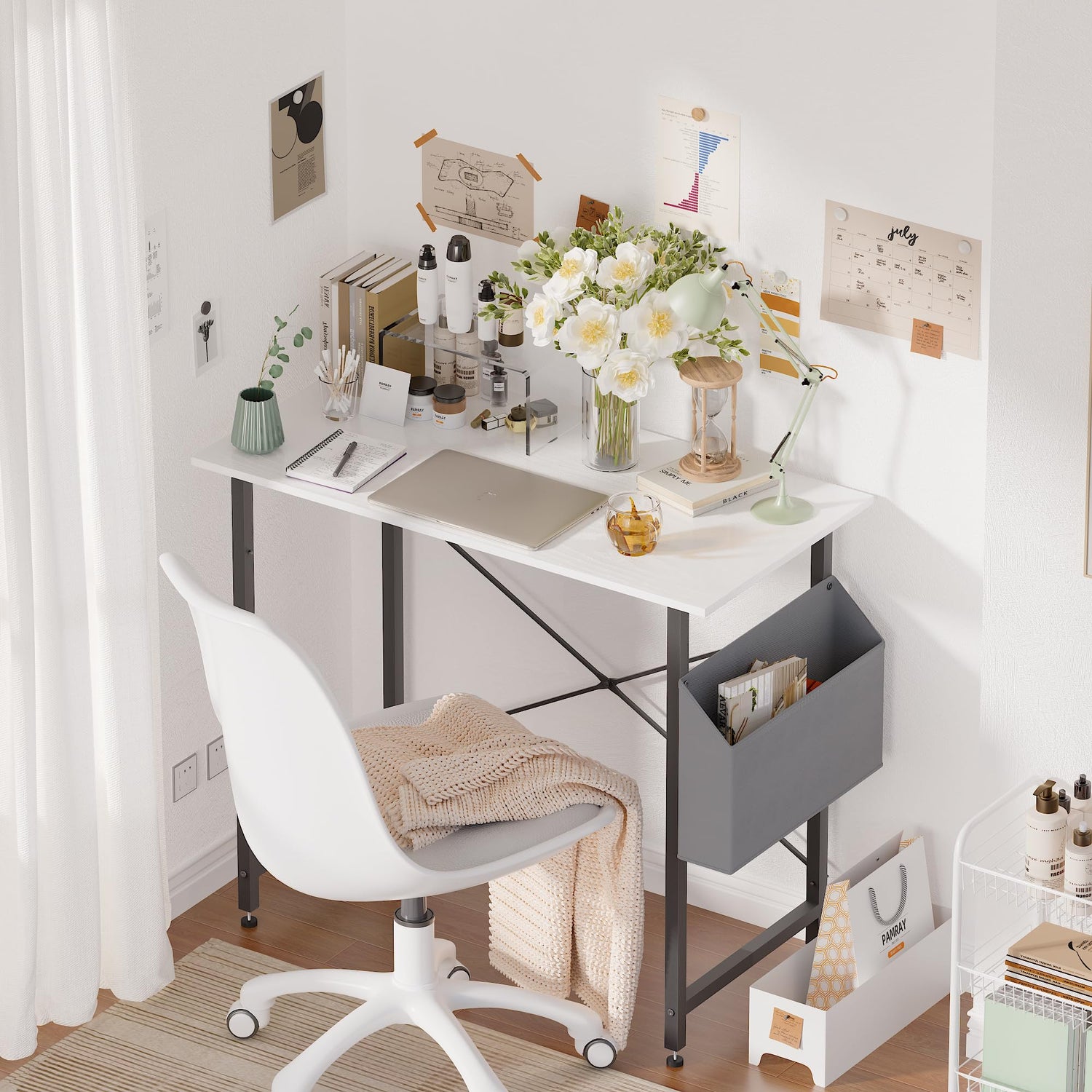 Pamray 32 Inch Computer Desk for Small Spaces with Storage Bag, Home Office Work Desk with Headphone Hook, Small Office Desk Study Writing Table