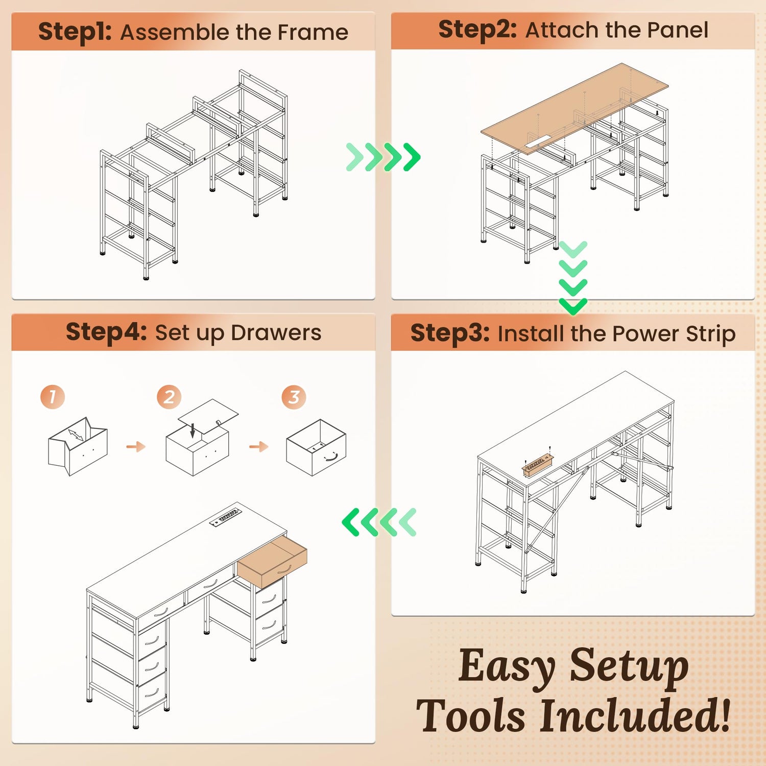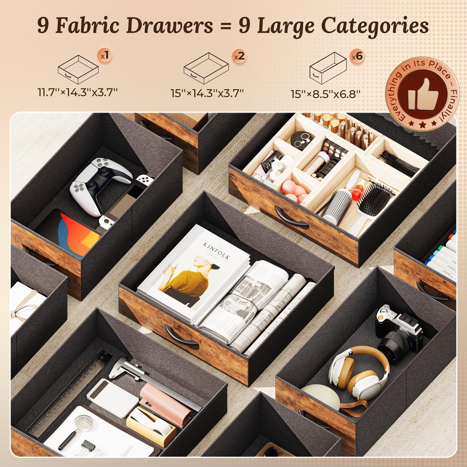 - 【Easy to Assemble】Don’t stress about setup. With a clear manual, included tools, and a smart design, you’ll have this desk for bedroom ready in no time. Each of the 9 fabric drawers takes just 3 simple steps to assemble. Spend less time building and more time enjoying your new workspace