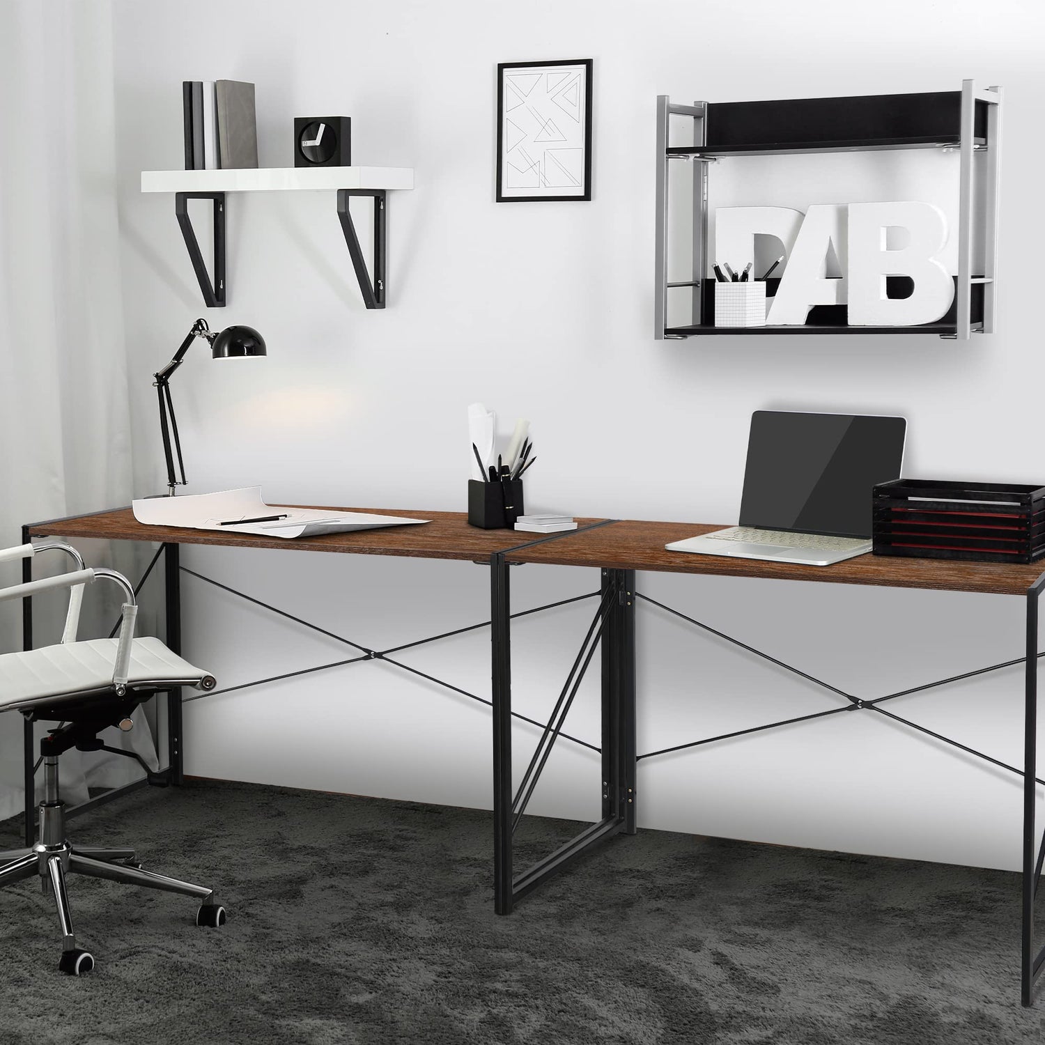 SUPER DEAL 40 inch Folding Computer Writing Desk Wood and Metal Study Desk, PC Laptop Home Office Study Table, Espresso