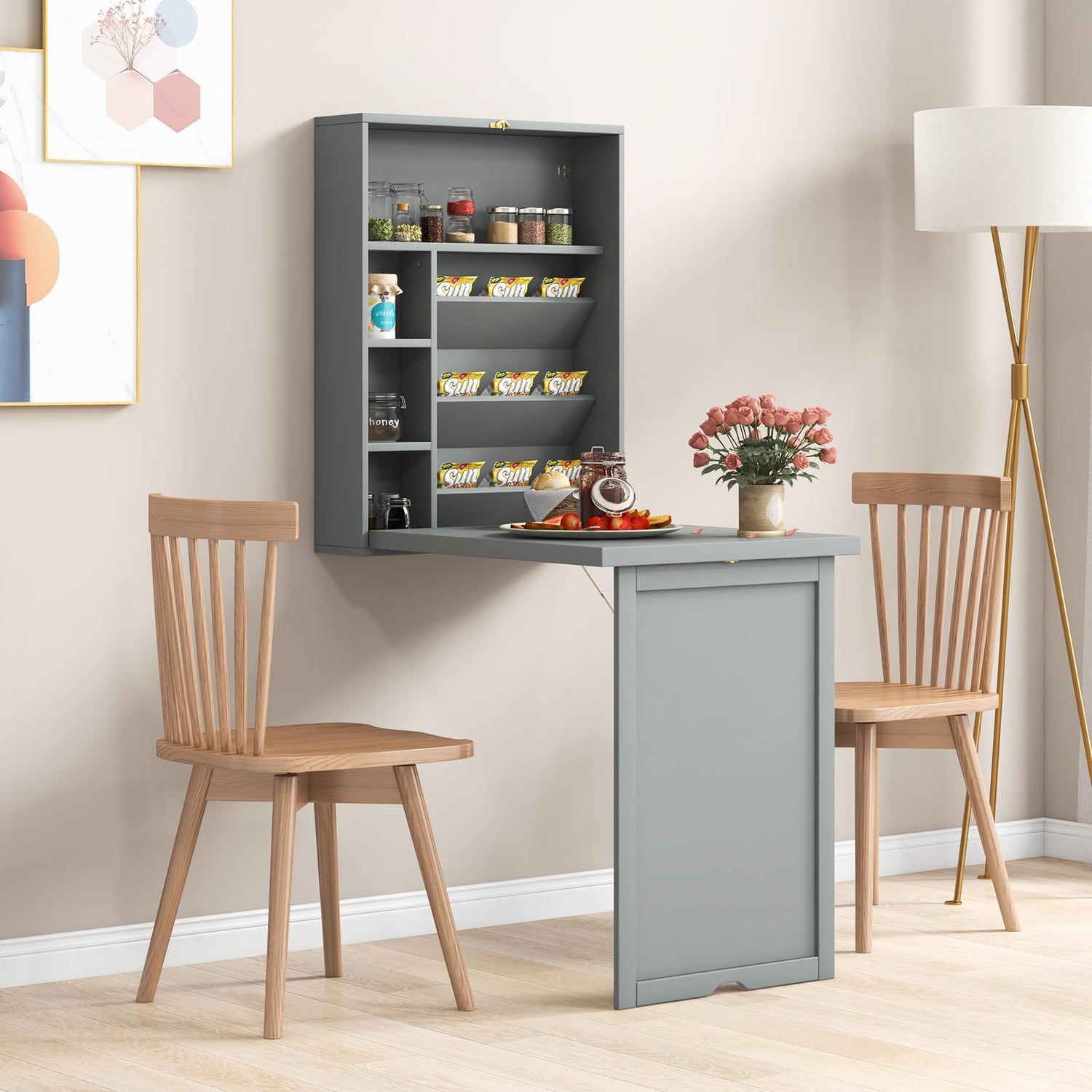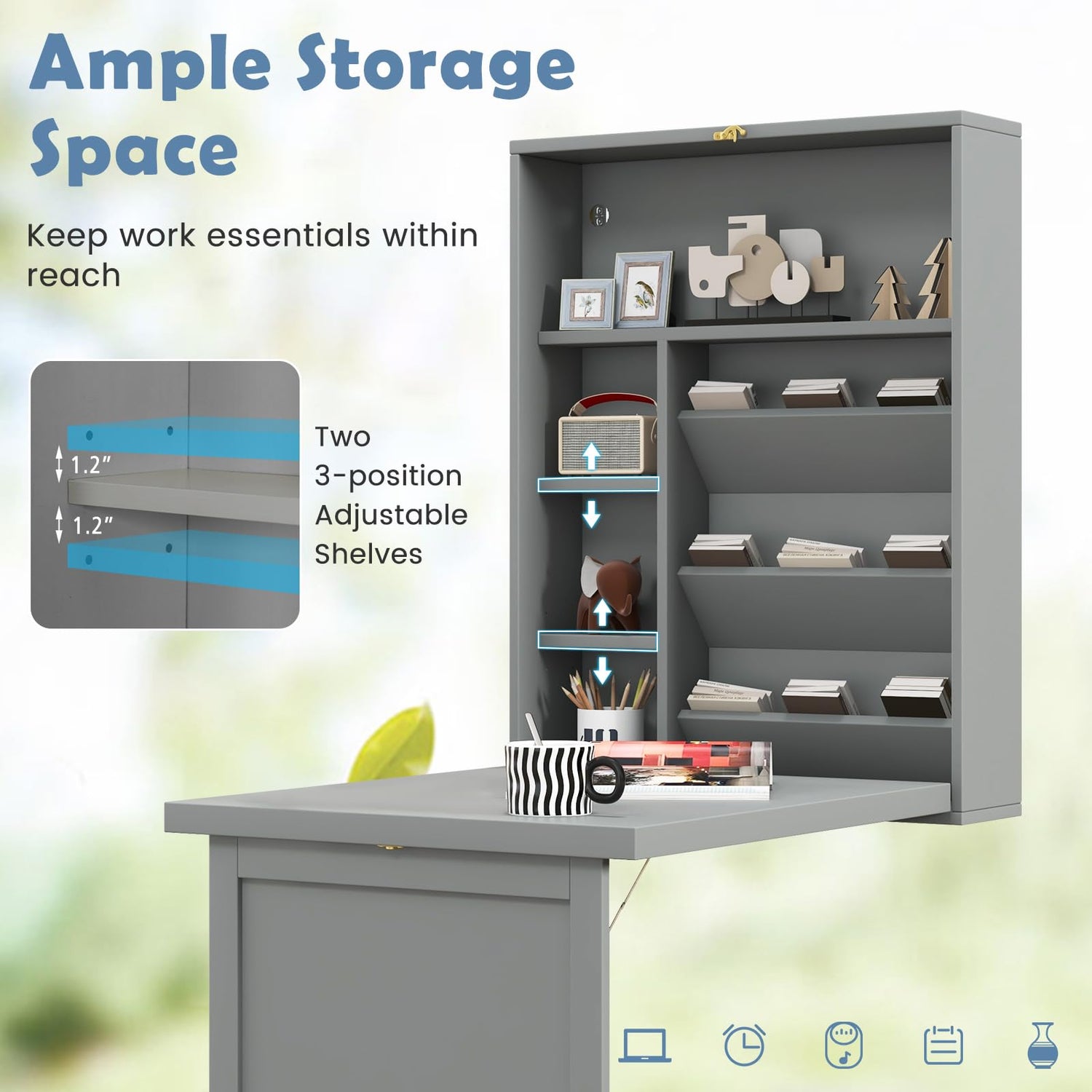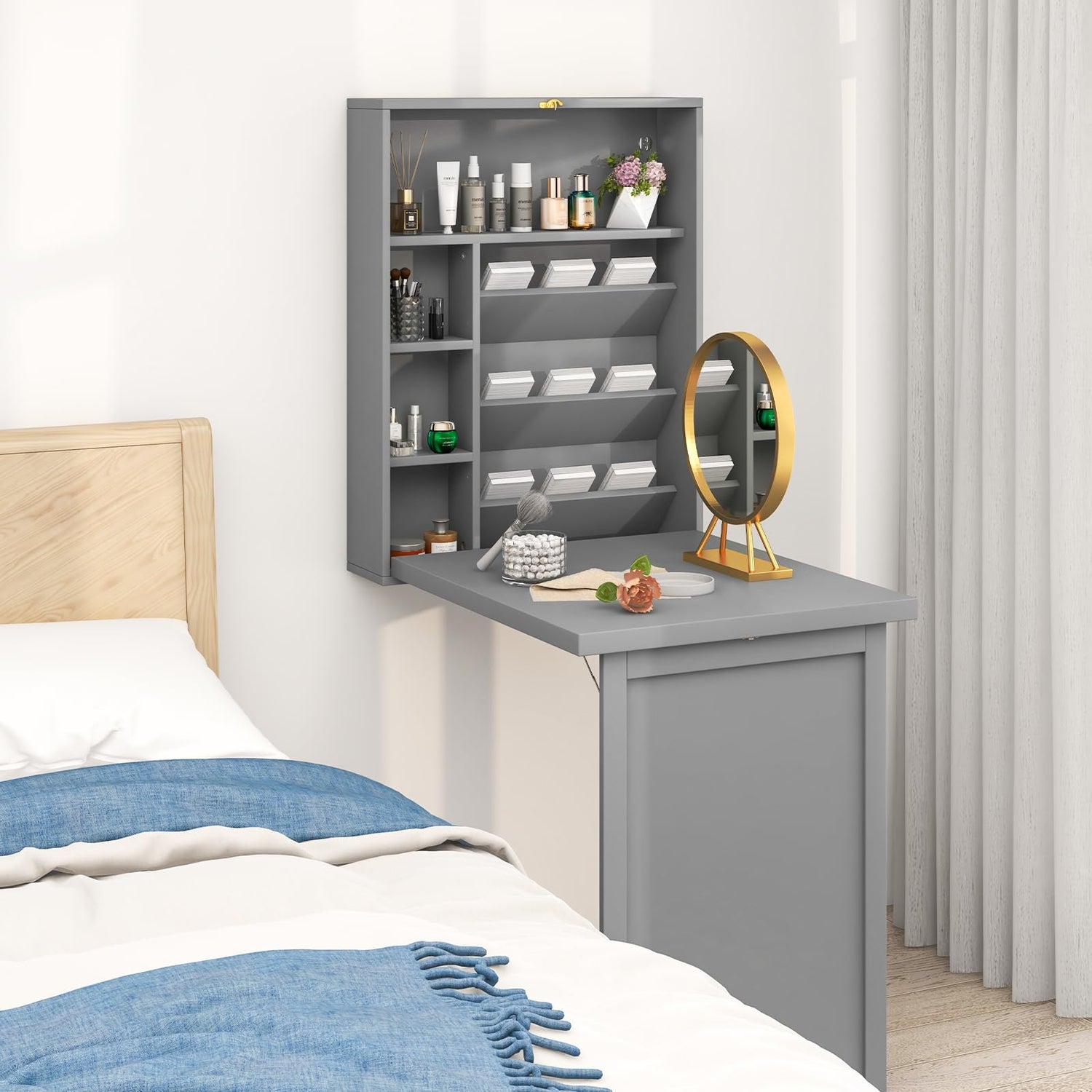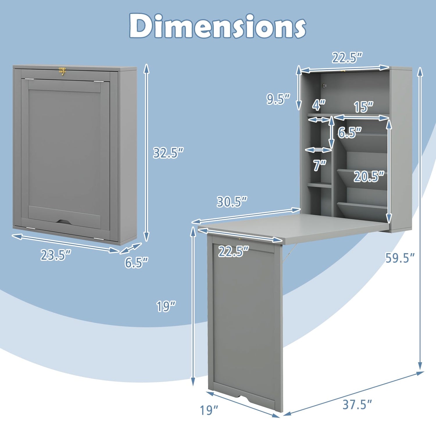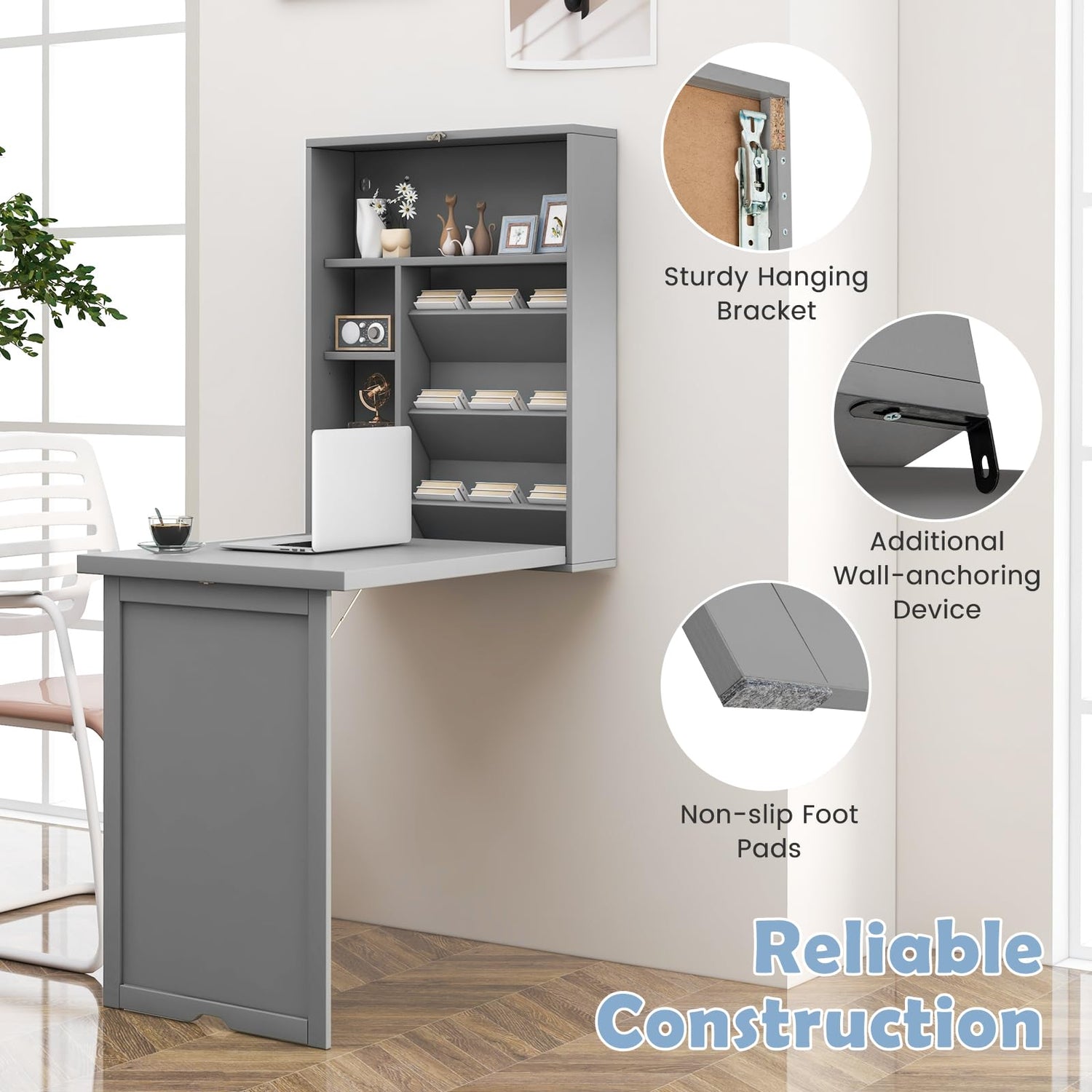 Tangkula Wall Mounted Desk, Fold Out Convertible Floating Desk, Multi-Function Murphy Desk for Home Office, Space Saving Computer Desk Hanging Table with Storage Area