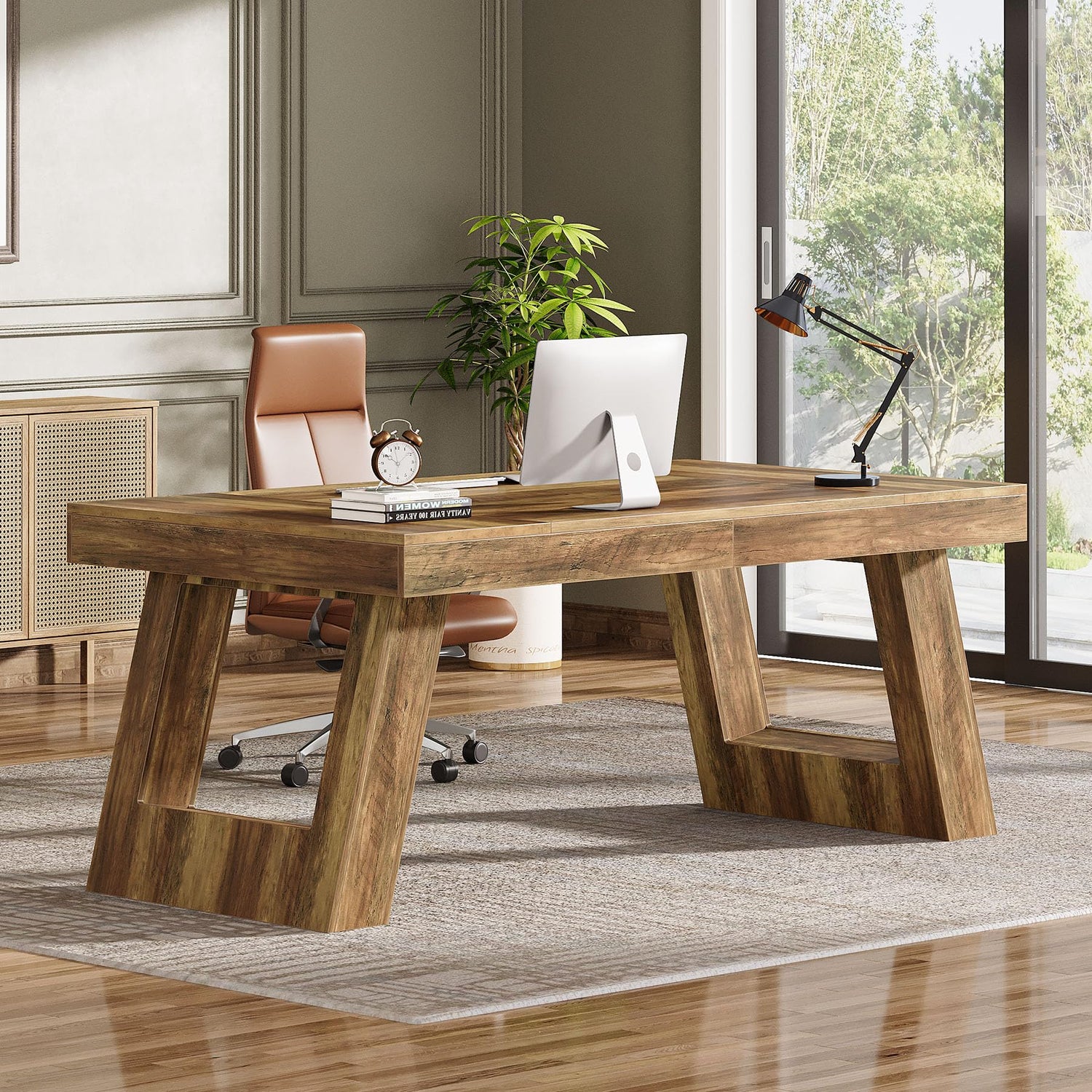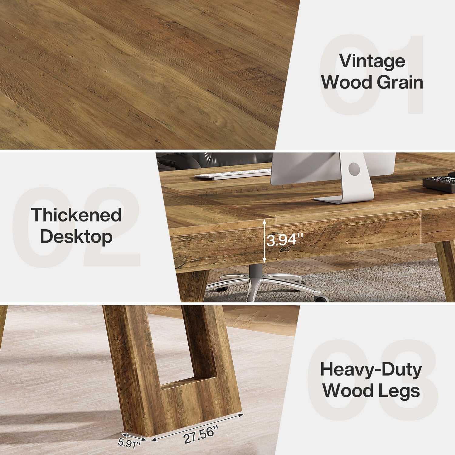 Tribesigns 63 Inches Wood Executive Desk, Large Home Office Computer Desk with Double Pedestal, Industrial Study Writing Table, Business Workstation for PC Laptop, Rustic Brown