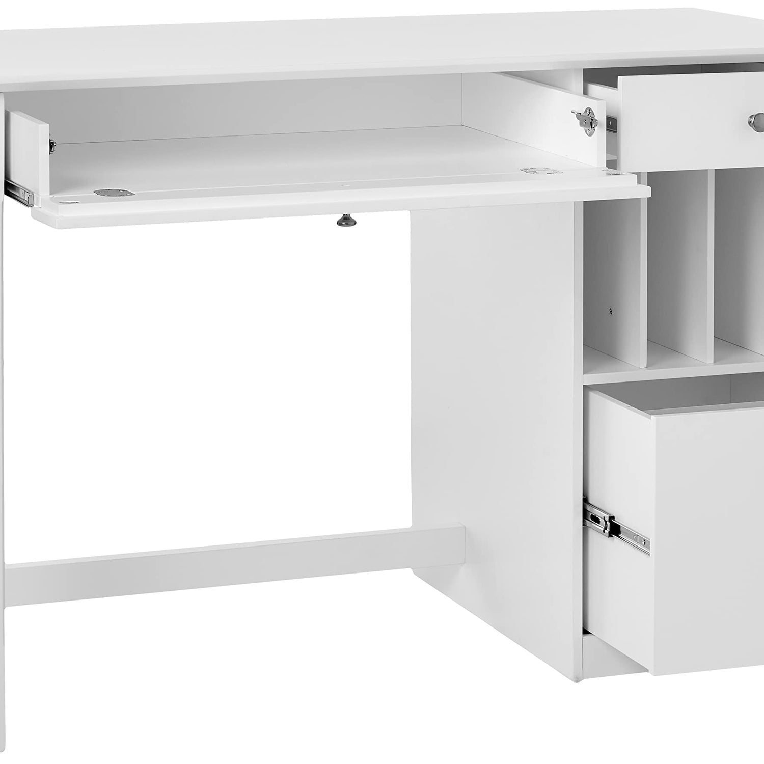 Details: Improve your work space with this classic wood desk, so you can have a place to organize all your work-related items. This computer desk is constructed from high-grade MDF with a beautiful, painted finish. Features a drop-down keyboard tray, hanging filing drawer, and file slots to provide you ample storage space. Ideal for your home office or in a corner of your home giving your space a modern appeal. This product has Intricate scroll work on legs.