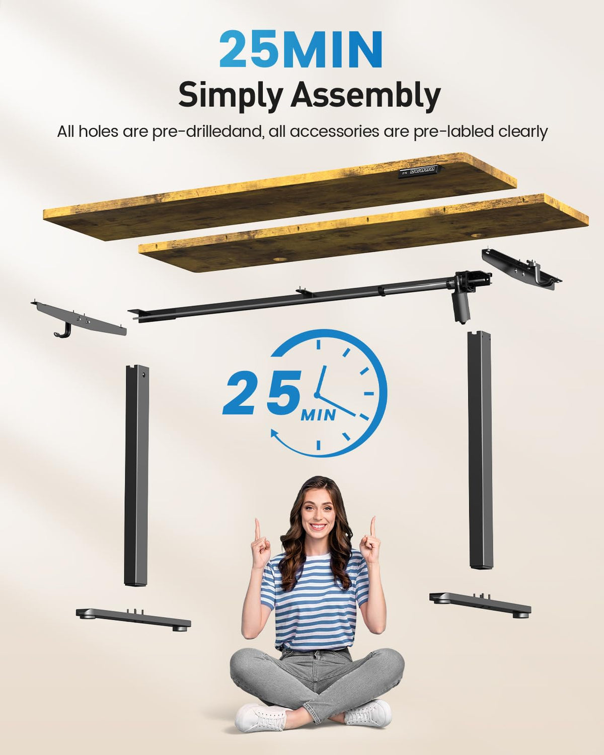• Easy Assembly: This computer standing desk includes a detailed installation manual, embedded screw hole positions, and an L-shaped installation tool for easy setup. For any assembly, usage queries, or warranty concerns, feel free to reach out to us anytime. Note: the desktop comes in two parts that require assembly and connection